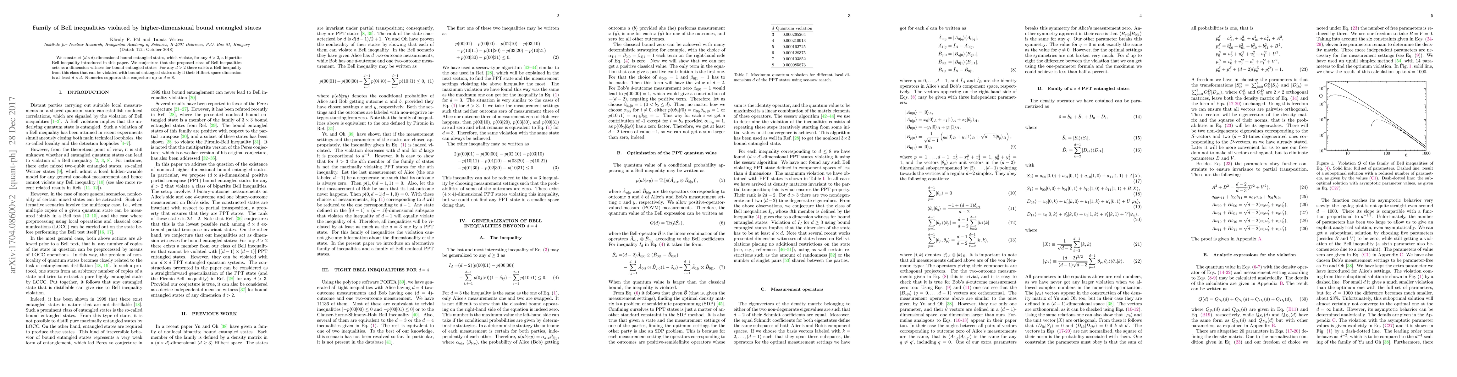 We construct ($d\times d$)-dimensional bound entangled states, which violate, for any $d>2$, a bipartite Bell inequality introduced in this paper. We conjecture that the proposed class of Bell inequalities acts as a dimension witness for bound entangled states: For any $d>2$ there exists a Bell inequality from this class that can be violated with bound entangled states only if their Hilbert space dimension is at least $d\times d$. Numerics supports this conjecture up to $d=8$.