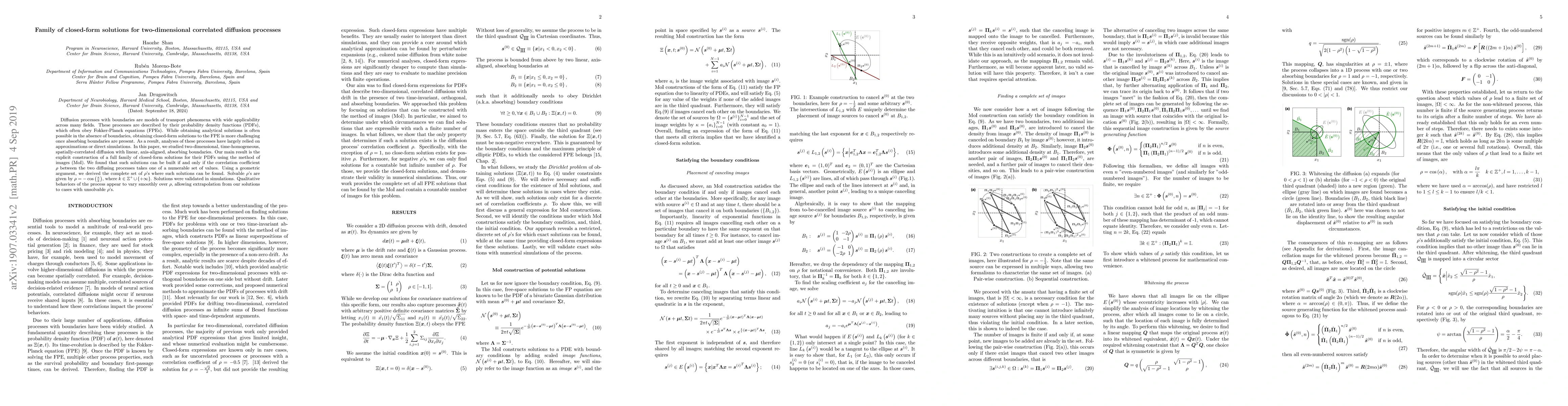 The paper presents a novel family of closed-form solutions for two-dimensional correlated diffusion processes with absorbing boundaries, constructed using the method of images and validated through Monte Carlo simulations.