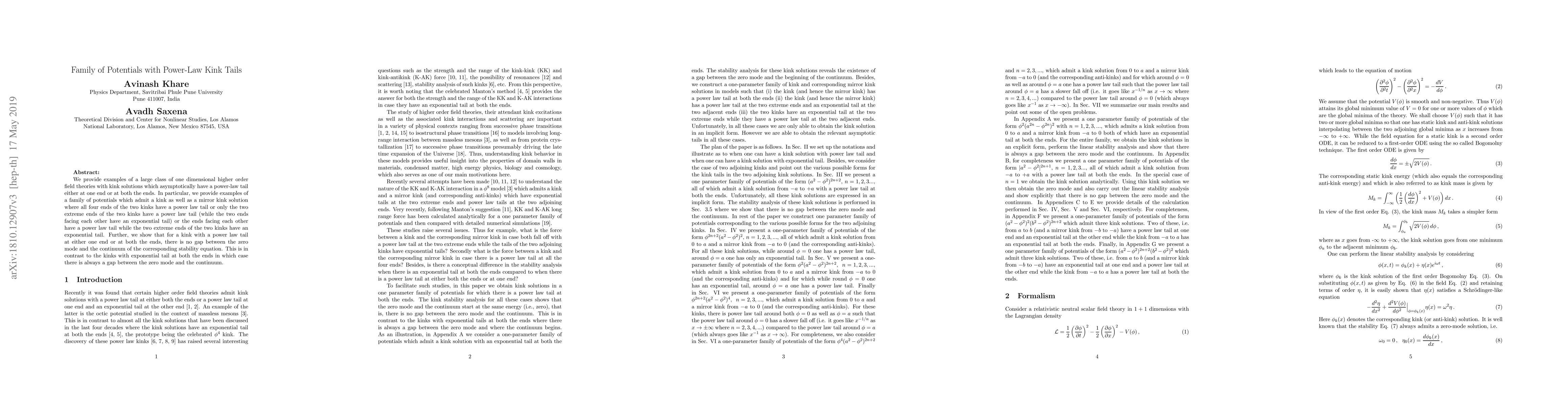 This paper explores a class of one-dimensional higher order field theories with kink solutions featuring power-law tail asymptotics. It provides both analytic and implicit solutions for these kinks and discusses the absence of a gap in the stability equation for kinks with power-law tails, contrasting with those having exponential tails.