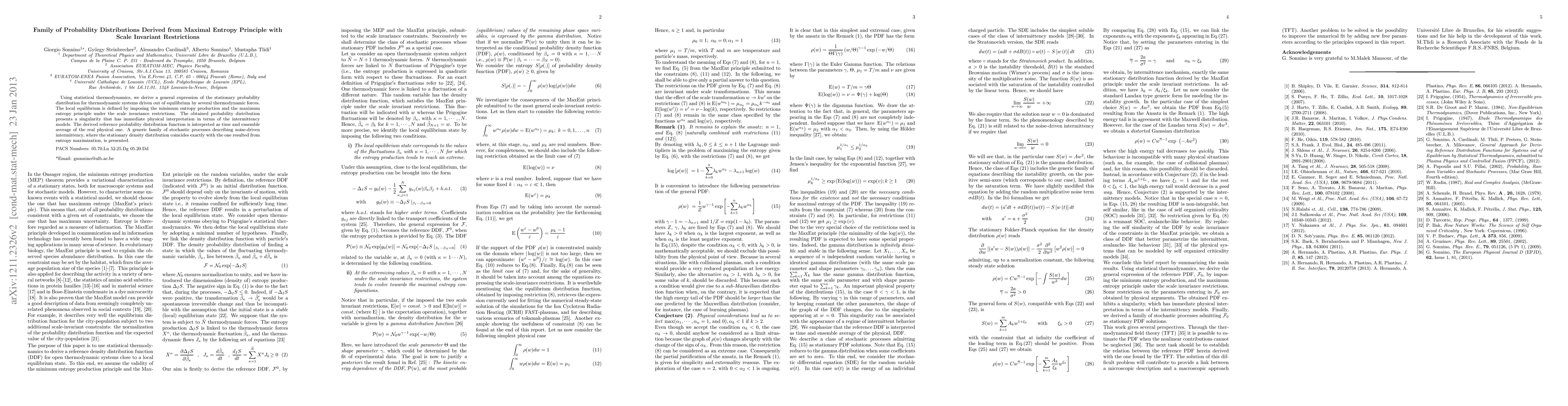Researchers derive a general probability distribution for out-of-equilibrium thermodynamic systems using statistical thermodynamics and entropy maximization principles. The resulting distribution is a reference point for noise-driven intermittency models and describes a generic family of stochastic processes with identical stationary density distributions.