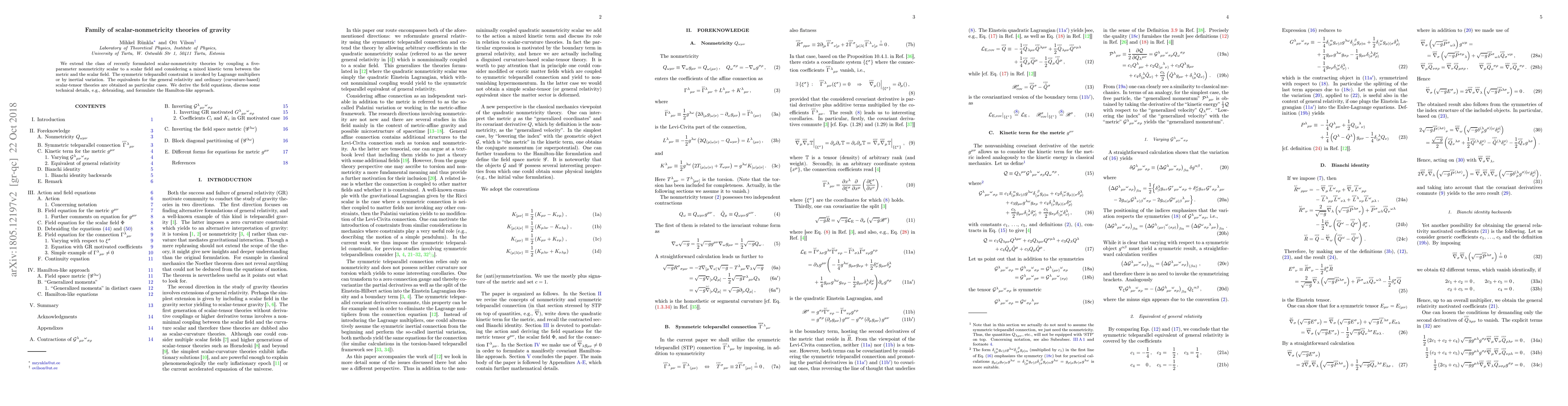 This paper extends scalar-nonmetricity gravity theories by introducing a five-parameter nonmetricity scalar coupled with a scalar field and a mixed kinetic term. It derives the field equations and discusses technical details, obtaining general relativity and scalar-tensor theories as special cases.