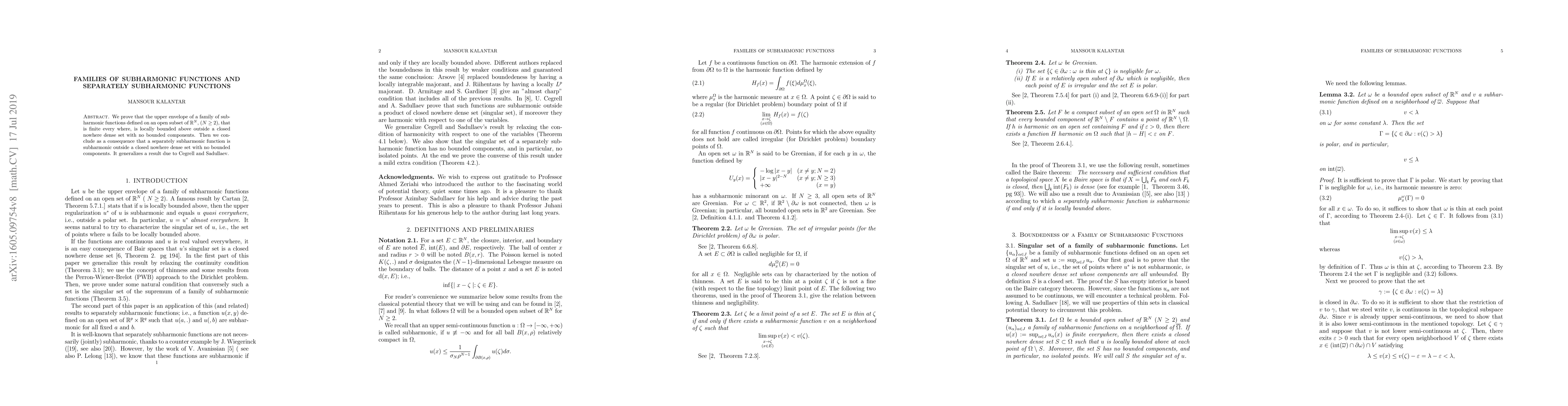 This paper proves that the upper envelope of a finite family of subharmonic functions is locally bounded outside a closed nowhere dense set with no bounded components. It further establishes that separately subharmonic functions share this property, generalizing prior results by Cegrell and Sadullaev.