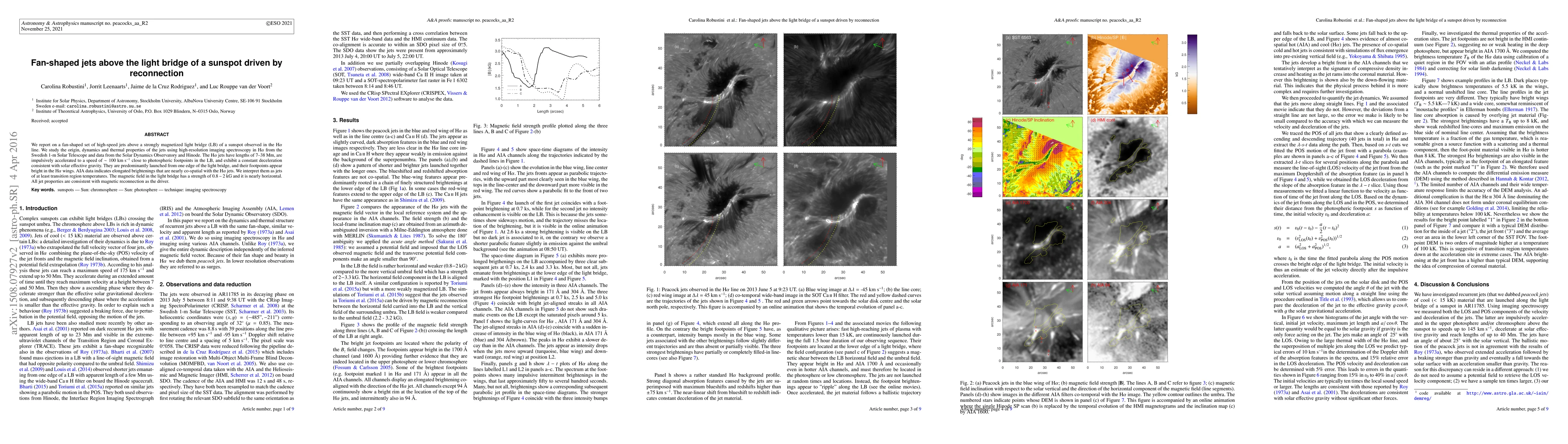 This study observes fan-shaped jets above a sunspot's light bridge, driven by magnetic reconnection, with speeds up to 100 km/s and lengths ranging from 7-38 Mm. The jets originate from one edge of the light bridge and are interpreted as transition region temperature jets.