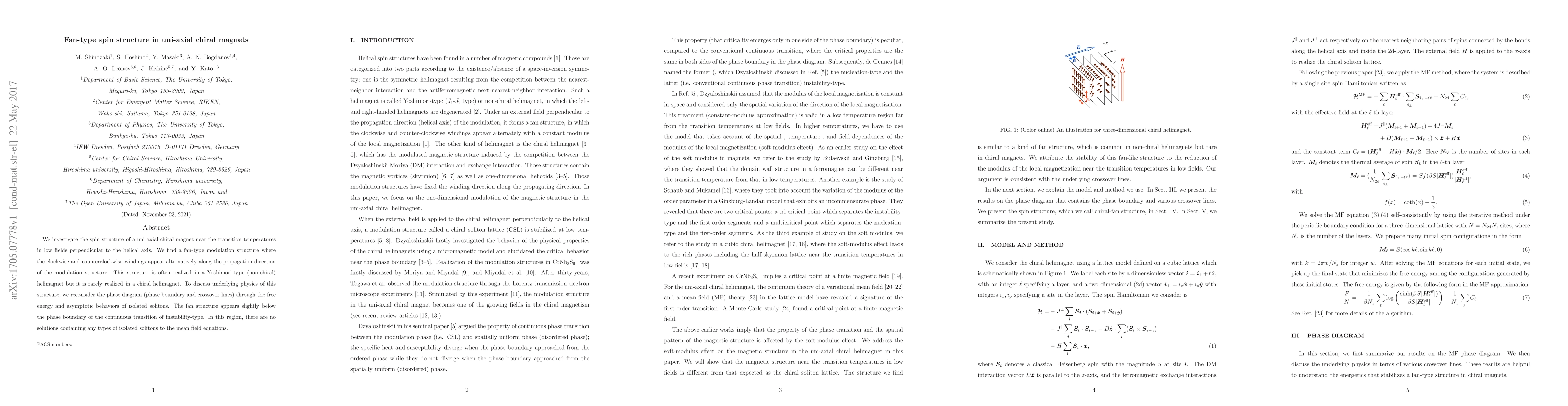 We investigate the spin structure of a uni-axial chiral magnet near the transition temperatures in low fields perpendicular to the helical axis. We find a fan-type modulation structure where the clockwise and counterclockwise windings appear alternatively along the propagation direction of the modulation structure. This structure is often realized in a Yoshimori-type (non-chiral) helimagnet but it is rarely realized in a chiral helimagnet. To discuss underlying physics of this structure, we reconsider the phase diagram (phase boundary and crossover lines) through the free energy and asymptotic behaviors of isolated solitons. The fan structure appears slightly below the phase boundary of the continuous transition of instability-type. In this region, there are no solutions containing any types of isolated solitons to the mean field equations.