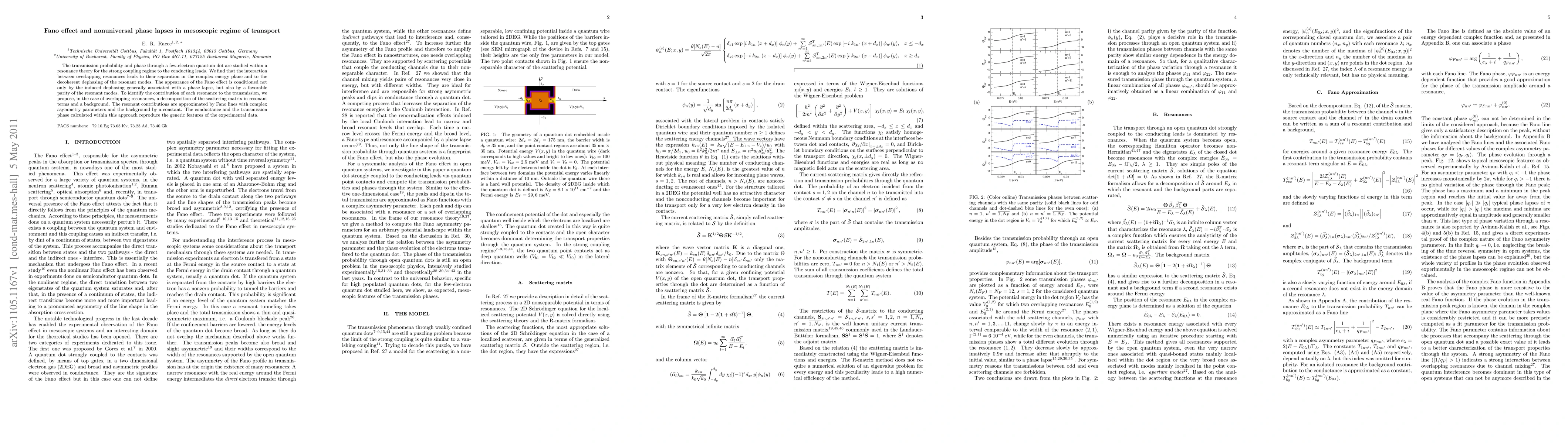 This paper investigates the transmission probability and phase in a few-electron quantum dot under strong coupling to conducting leads, revealing that overlapping resonances lead to their separation and decoherence. The Fano effect emerges due to both induced dephasing and favorable parity of resonant modes, and a decomposition of the scattering matrix is proposed to identify individual resonance contributions.