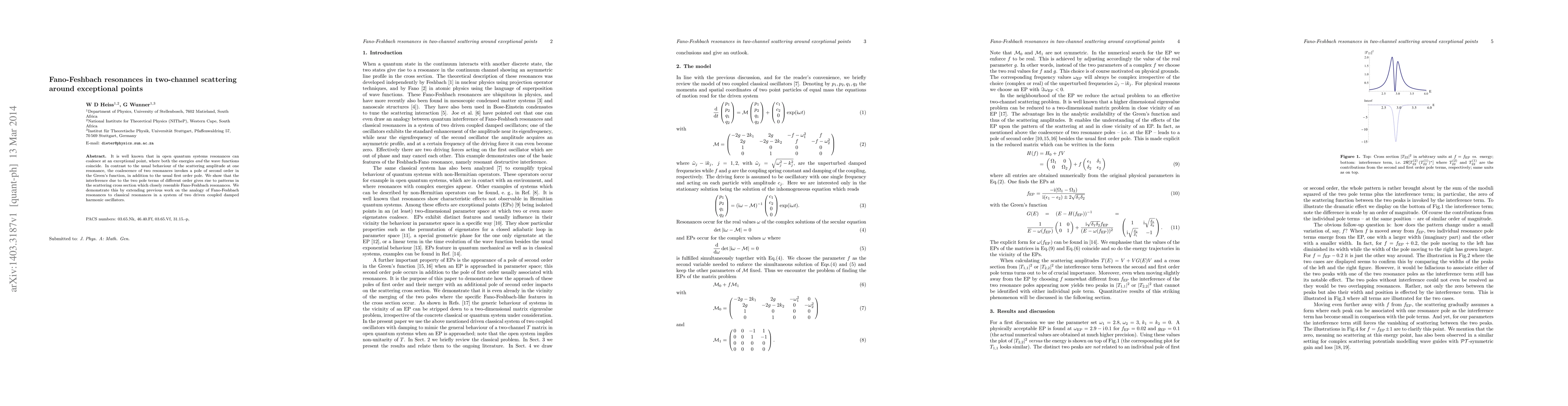 This paper investigates Fano-Feshbach resonances in two-channel scattering systems at exceptional points, where resonances merge. It reveals that the coalescence creates second-order poles in the Green's function, leading to unique scattering cross-section patterns resembling Fano-Feshbach resonances, demonstrated via two coupled driven damped harmonic oscillators.