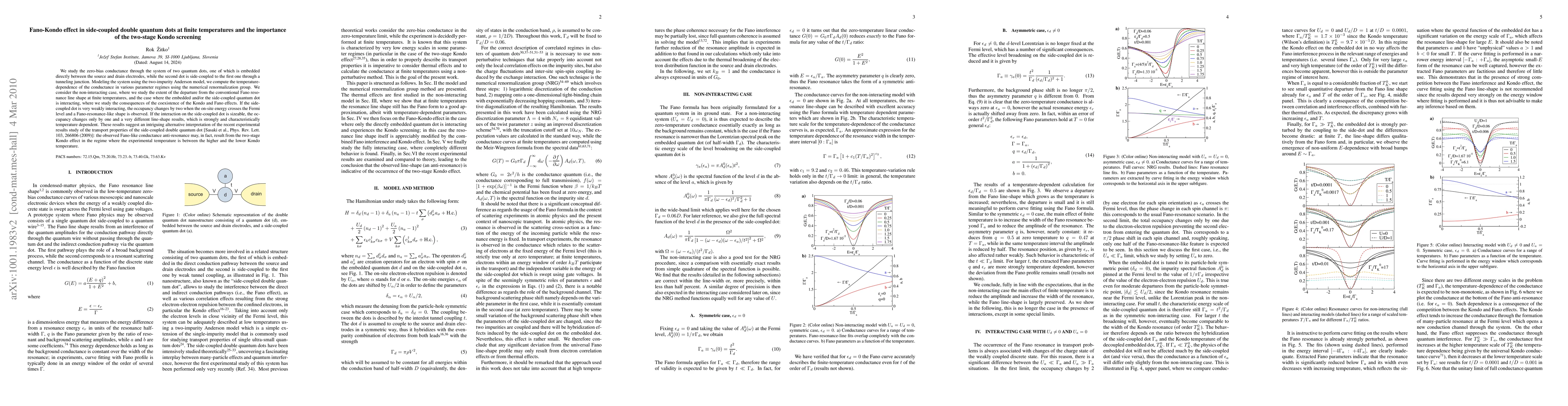 We study the zero-bias conductance through the system of two quantum dots, one of which is embedded directly between the source and drain electrodes, while the second dot is side-coupled to the first one through a tunneling junction. Modeling the system using the two-impurity Anderson model, we compute the temperature-dependence of the conductance in various parameter regimes using the numerical renormalization group. We consider the non-interacting case, where we study the extent of the departure from the conventional Fano resonance line shape at finite temperatures, and the case where the embedded and/or the side-coupled quantum dot is interacting, where we study the consequences of the coexistence of the Kondo and Fano effects. If the side-coupled dot is very weakly interacting, the occupancy changes by two when the on-site energy crosses the Fermi level and a Fano-resonance-like shape is observed. If the interaction on the side-coupled dot is sizeable, the occupancy changes only by one and a very different line-shape results, which is strongly and characteristically temperature dependent. These results suggest an intriguing alternative interpretation of the recent experimental results study of the transport properties of the side-coupled double quantum dot [Sasaki et al., Phys. Rev. Lett. 103, 266806 (2009)]: the observed Fano-like conductance anti-resonance may, in fact, result from the two-stage Kondo effect in the regime where the experimental temperature is between the higher and the lower Kondo temperature.