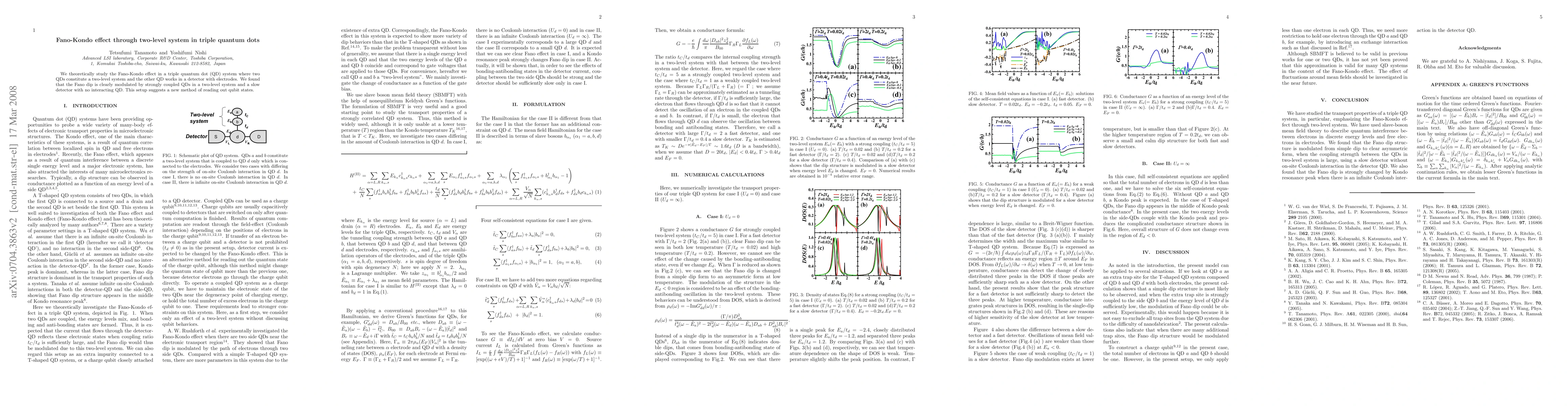 The research paper investigates the Fano-Kondo effect in a triple quantum dot system, demonstrating how the Fano dip is modulated by strongly coupled quantum dots in a two-level system, suggesting a novel method for qubit state readout.