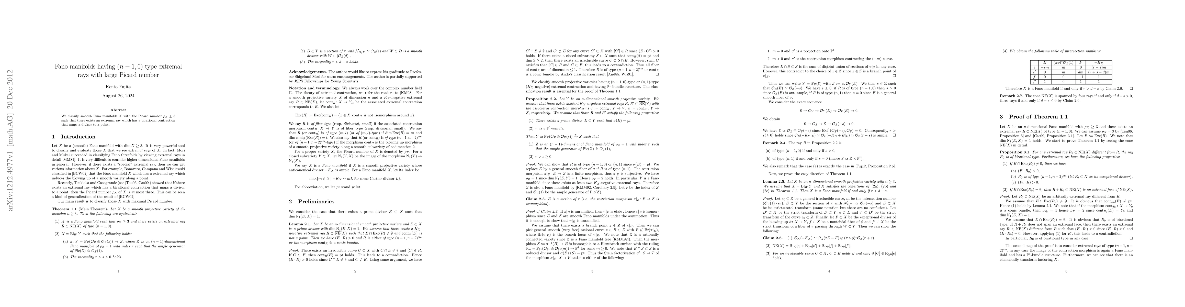 Summary: The paper classifies smooth Fano manifolds with a high Picard number (at least 3) that possess an extremal ray allowing a birational contraction mapping a divisor to a point. This classification provides insights into the structure and properties of these manifolds.