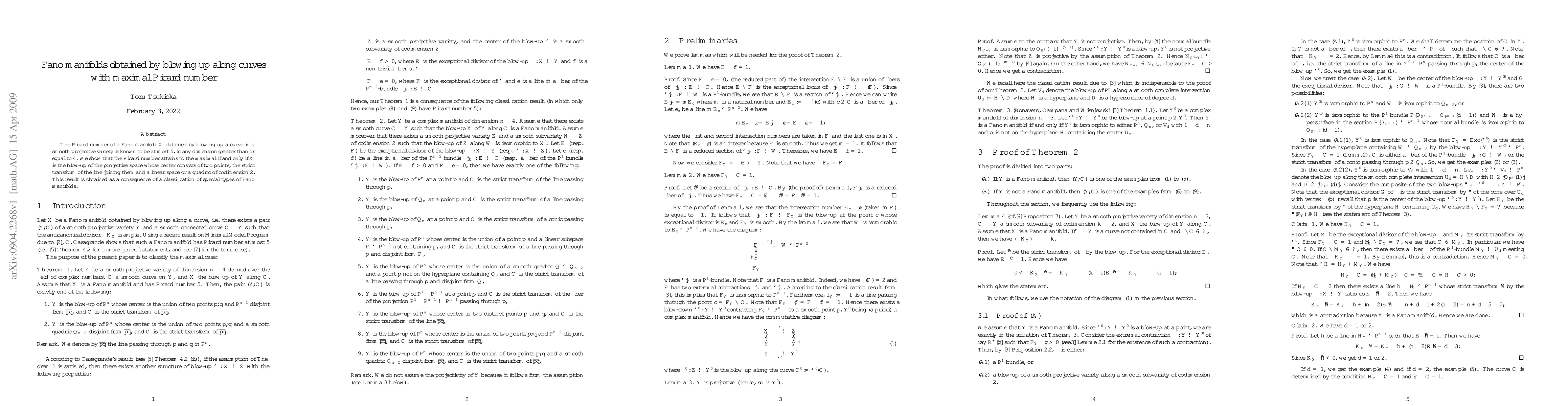 The Picard number of a Fano manifold X obtained by blowing up a curve in a smooth projective variety is known to be at most 5, in any dimension greater than or equal to 4. We show that the Picard number attains to the maximal if and only if X is the blow-up of the projective space whose center consists of two points, the strict transform of the line joining them and a linear subspace or a quadric of codimension 2. This result is obtained as a consequence of a classification of special types of Fano manifolds.