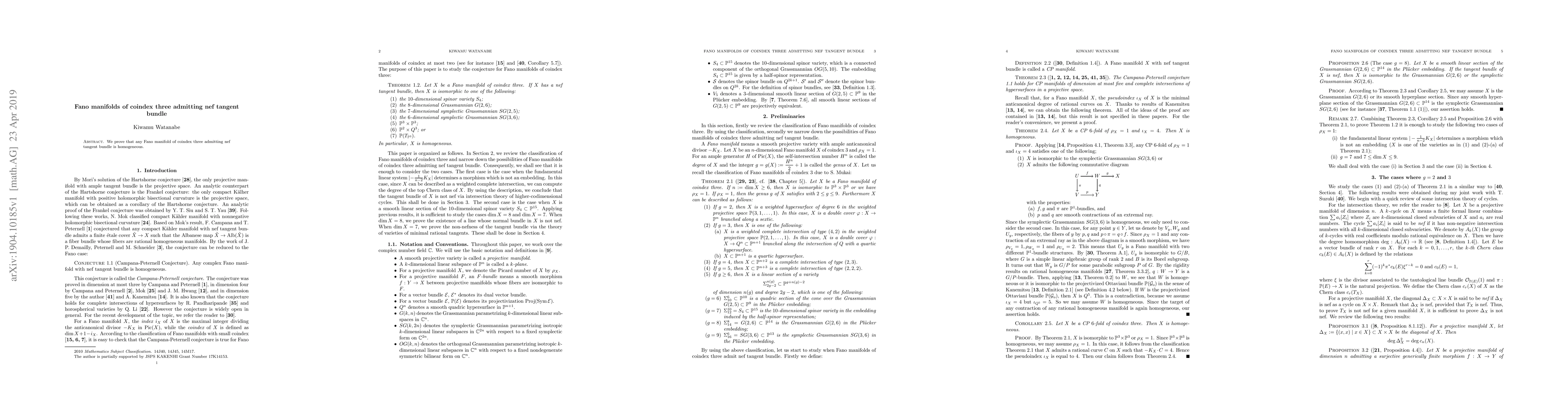 Summary: This paper establishes that Fano manifolds with a coindex of three and a nef tangent bundle are necessarily homogeneous. It provides a proof demonstrating this property.