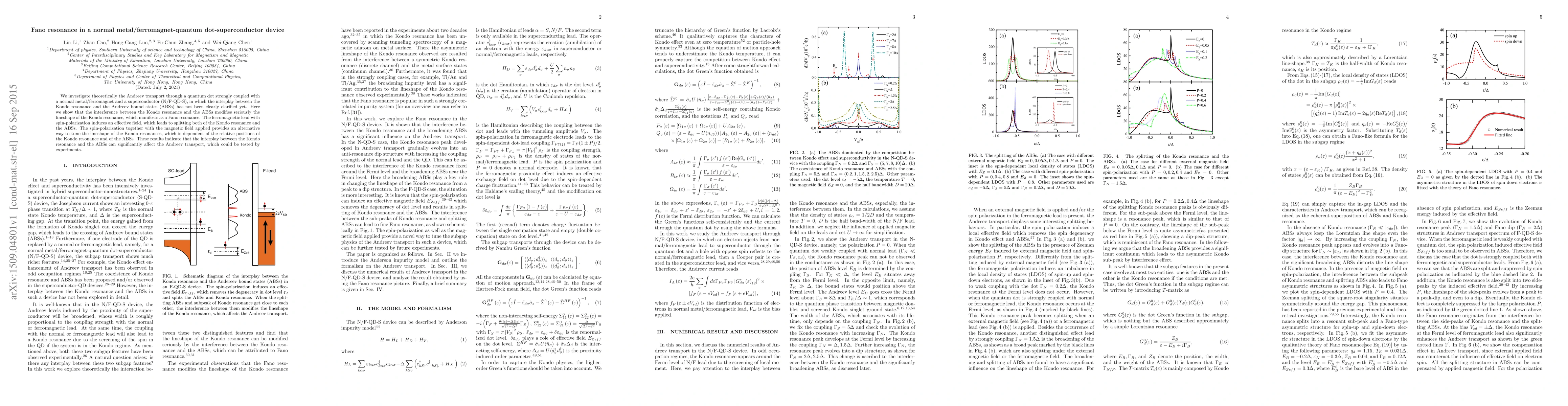 Researchers discovered Fano resonance in a hybrid device combining a normal metal, ferromagnet, quantum dot, and superconductor, which can significantly affect Andreev transport. The findings suggest that the interplay between Kondo resonance and Andreev bound states can be tuned using magnetic fields and spin polarization.