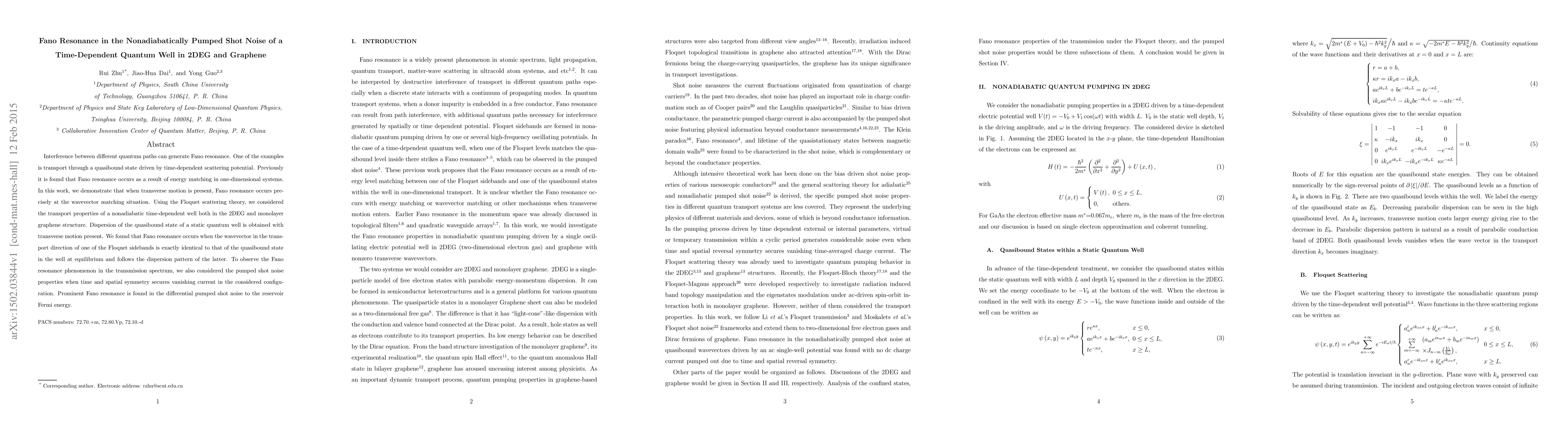 This paper demonstrates that Fano resonance occurs in the transport properties of a time-dependent quantum well in 2DEG and graphene when wavevector matching is achieved, using Floquet scattering theory. The study reveals that Fano resonance in the differential pumped shot noise is prominent at the wavevector matching condition, highlighting its occurrence in the transmission spectrum.