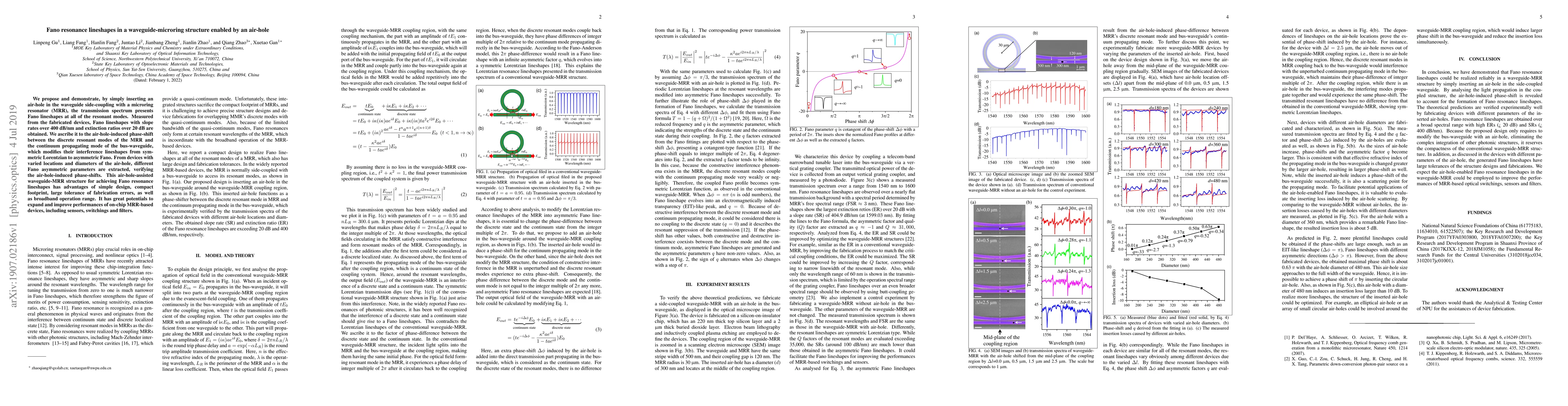 This paper proposes a simple method to generate Fano resonance lineshapes in a waveguide-microring structure by inserting an air-hole, achieving high slope rates and extinction ratios. The air-hole induces phase shifts that modify interference patterns, demonstrating potential for enhancing on-chip devices.
