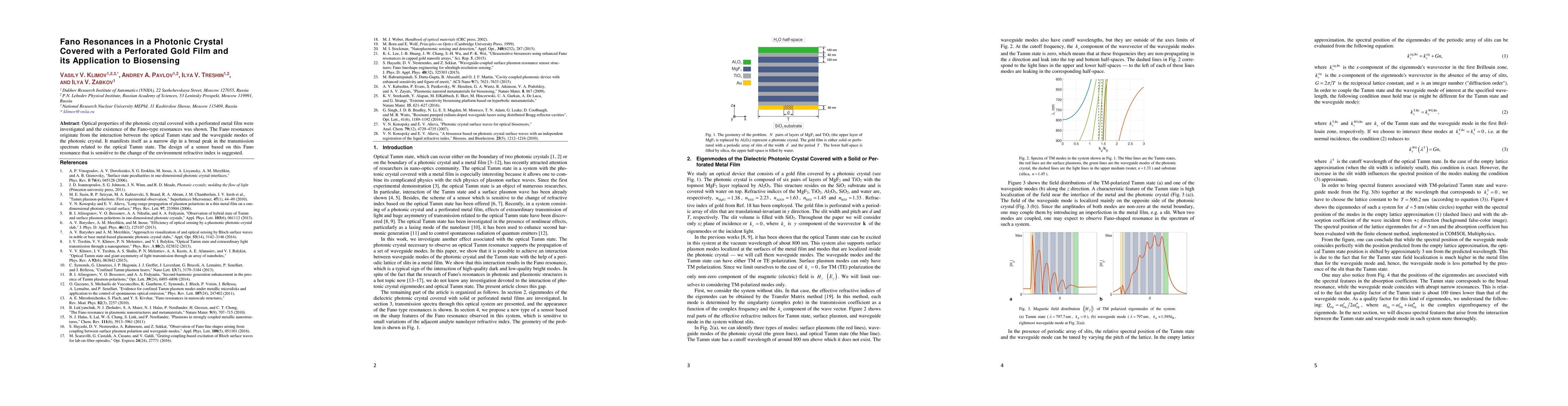 This paper investigates the optical properties of a photonic crystal covered with a perforated gold film, revealing Fano resonances due to the interaction between the optical Tamm state and waveguide modes. A biosensing application based on these resonances, which respond to changes in the surrounding refractive index, is proposed.