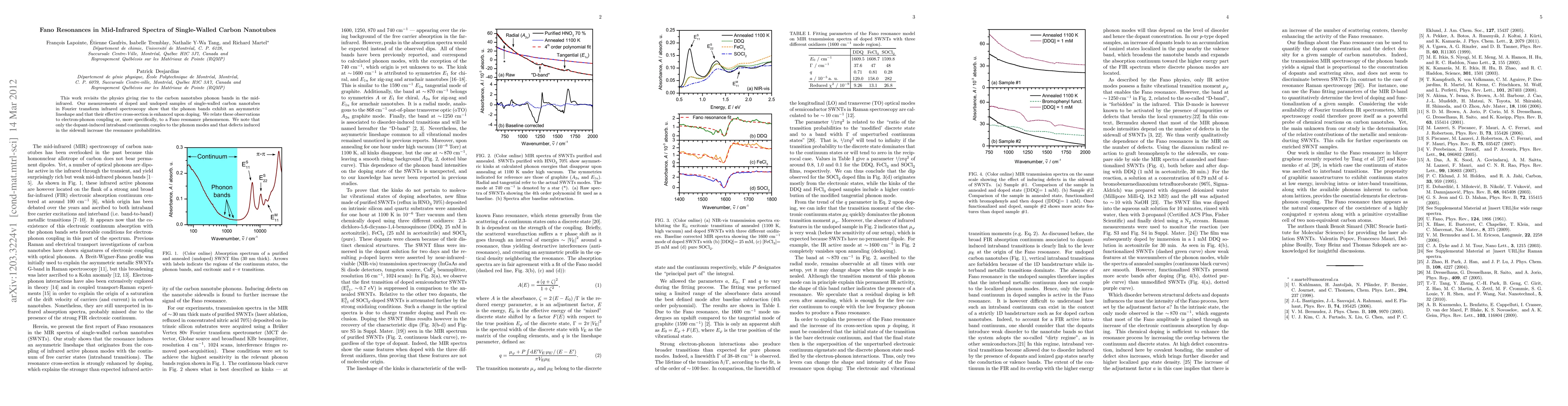 This study investigates the mid-infrared phonon bands in single-walled carbon nanotubes, revealing asymmetric lineshapes and enhanced cross-sections due to doping. The findings are attributed to Fano resonances linked to electron-phonon coupling and increased resonance probabilities from sidewall defects.