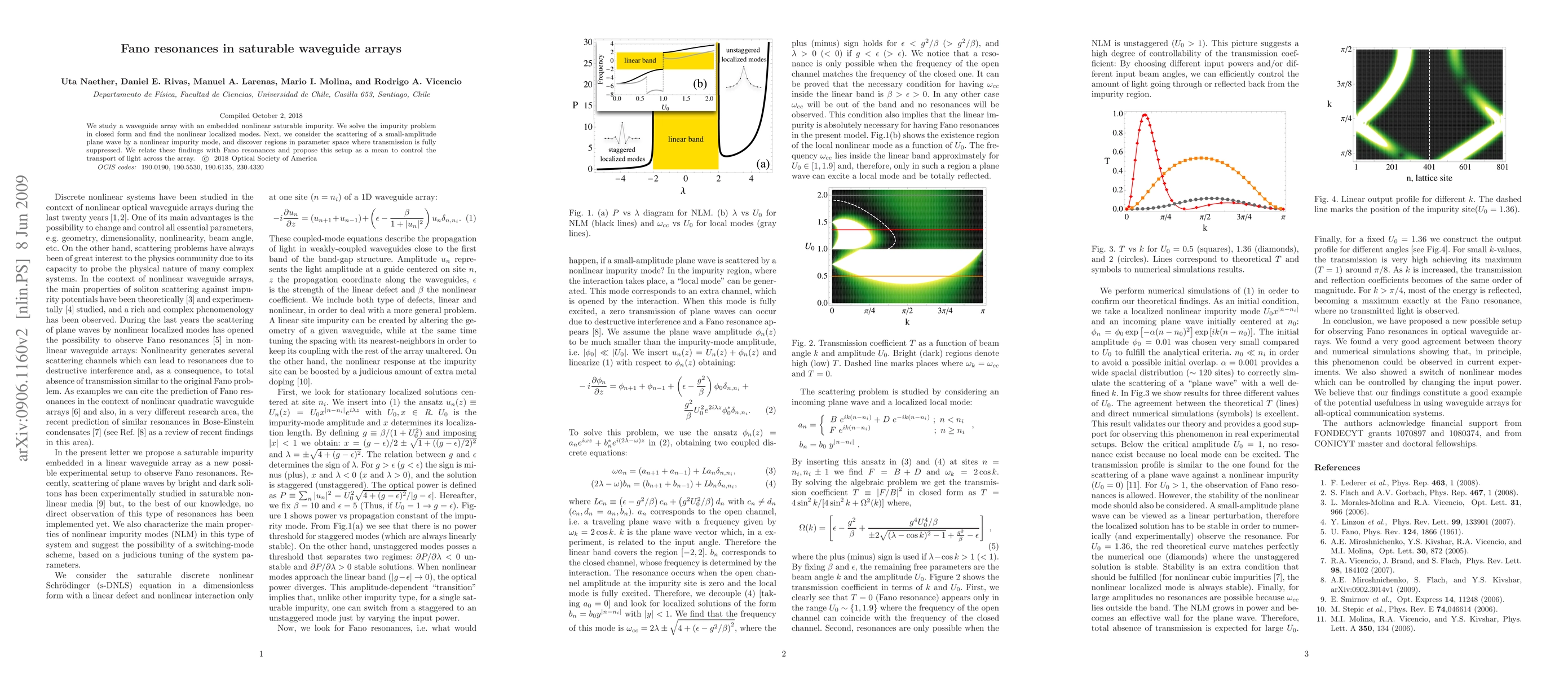 This paper investigates a nonlinear saturable impurity in a waveguide array, discovering localized nonlinear modes and regions where light transmission is completely blocked, analogous to Fano resonances, suggesting potential for light transport control.