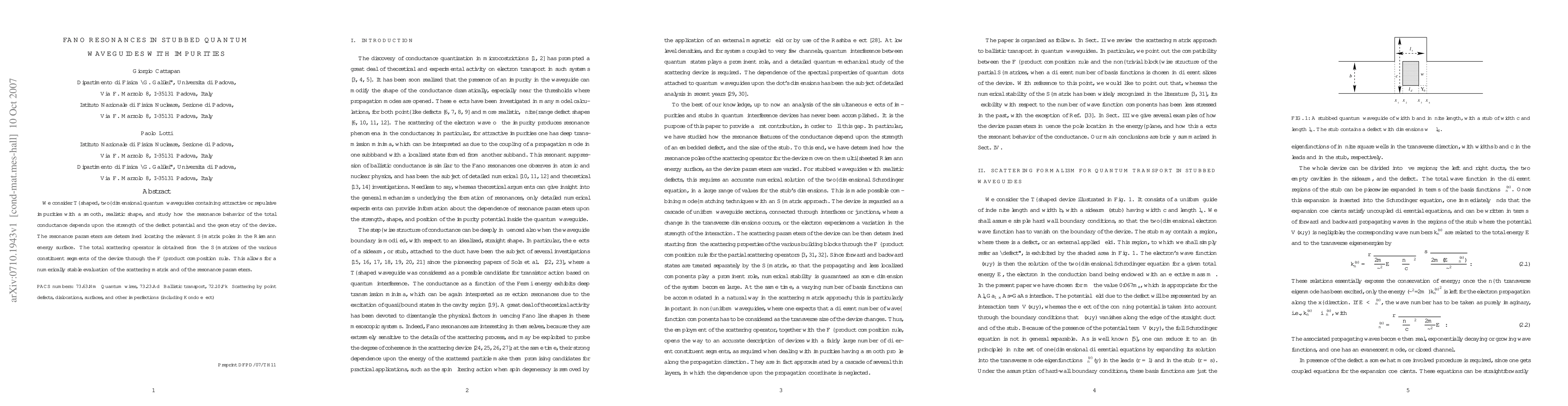 We consider T--shaped, two--dimensional quantum waveguides containing attractive or repulsive impurities with a smooth, realistic shape, and study how the resonance behavior of the total conductance depends upon the strength of the defect potential and the geometry of the device. The resonance parameters are determined locating the relevant S-matrix poles in the Riemann energy surface. The total scattering operator is obtained from the S-matrices of the various constituent segments of the device through the *-product composition rule. This allows for a numerically stable evaluation of the scattering matrix and of the resonance parameters.