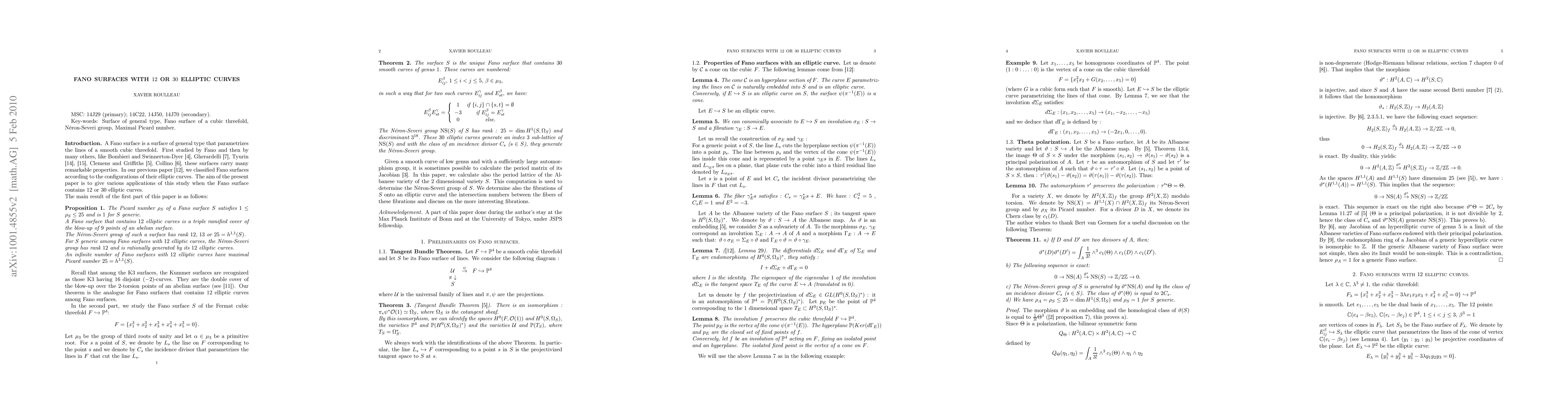 This research paper studies Fano surfaces containing 12 or 30 elliptic curves, determining their Picard number and computing a basis for the Neron-Severi group of one Fano surface.