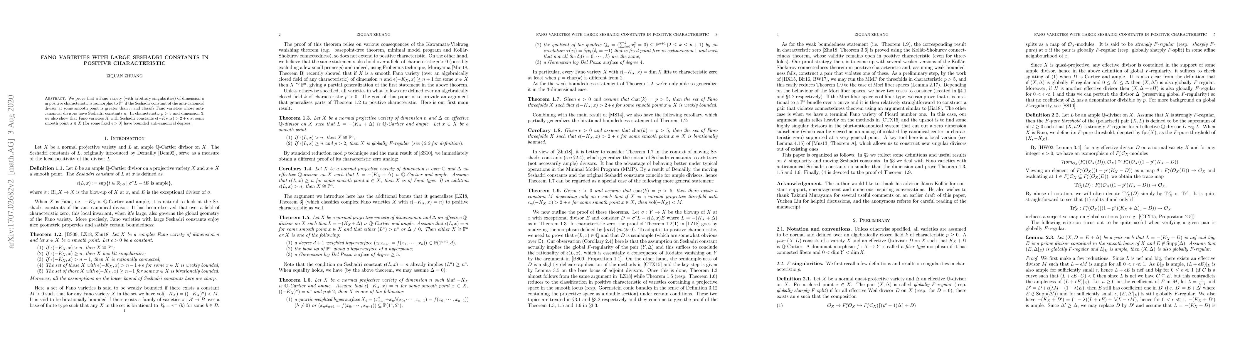This paper proves that a Fano variety in positive characteristic is isomorphic to $\mathbb{P}^n$ if its Seshadri constant exceeds the dimension, and classifies Fano varieties with Seshadri constants equal to the dimension. It also shows that in characteristic $p>5$ and dimension 3, Fano varieties with sufficiently large Seshadri constants have bounded anti-canonical degrees.