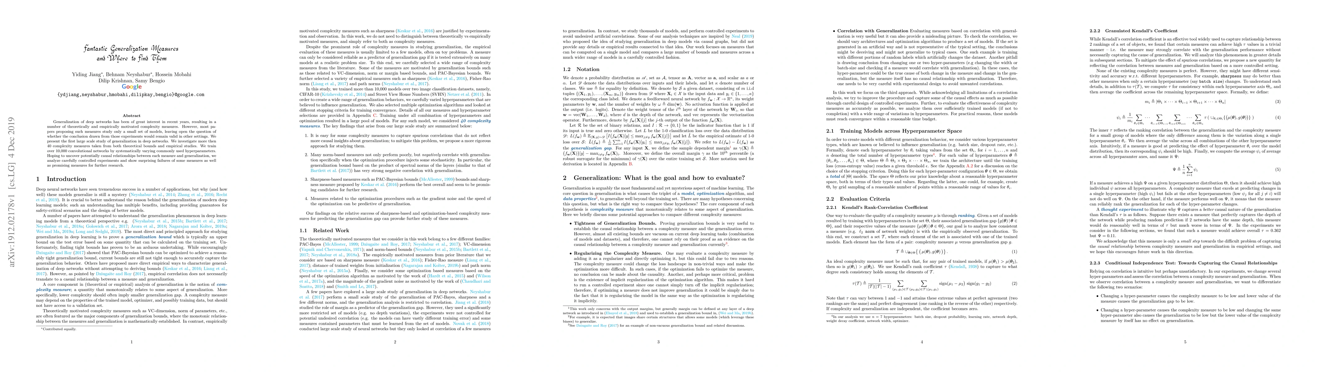 This paper conducts a large-scale study to evaluate over 40 complexity measures for generalization in deep networks, training over 10,000 convolutional networks under varied hyperparameters. The study reveals surprising failures and promising new measures for future research in deep network generalization.