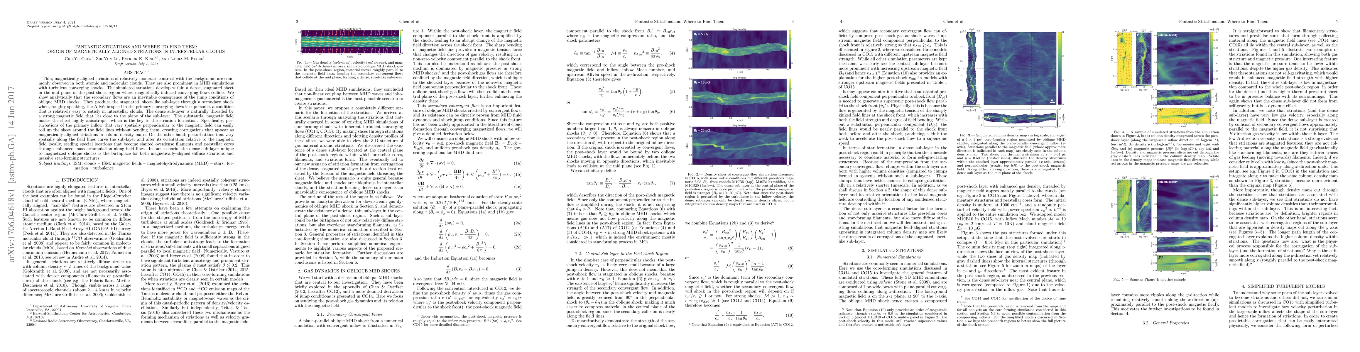 Thin, magnetically aligned striations of relatively moderate contrast with the background are commonly observed in both atomic and molecular clouds. They are also prominent in MHD simulations with turbulent converging shocks. The simulated striations develop within a dense, stagnated sheet in the mid plane of the post-shock region where magnetically-induced converging flows collide. We show analytically that the secondary flows are an inevitable consequence of the jump conditions of oblique MHD shocks. They produce the stagnated, sheet-like sub-layer through a secondary shock when, roughly speaking, the Alfv\'enic speed in the primary converging flows is supersonic, a condition that is relatively easy to satisfy in interstellar clouds. The dense sub-layer is naturally threaded by a strong magnetic field that lies close to the plane of the sub-layer. The substantial magnetic field makes the sheet highly anisotropic, which is the key to the striation formation. Specifically, perturbations of the primary inflow that vary spatially perpendicular to the magnetic field can easily roll up the sheet around the field lines without bending them, creating corrugations that appear as magnetically-aligned striations in column density maps. On the other hand, perturbations that vary spatially along the field lines curve the sub-layer and alter its orientation relative to the magnetic field locally, seeding special locations that become slanted overdense filaments and prestellar cores through enhanced mass accumulation along field lines. In our scenario, the dense sub-layer unique to magnetized oblique shocks is the birthplace for both magnetically-aligned diffuse striations and massive star-forming structures.