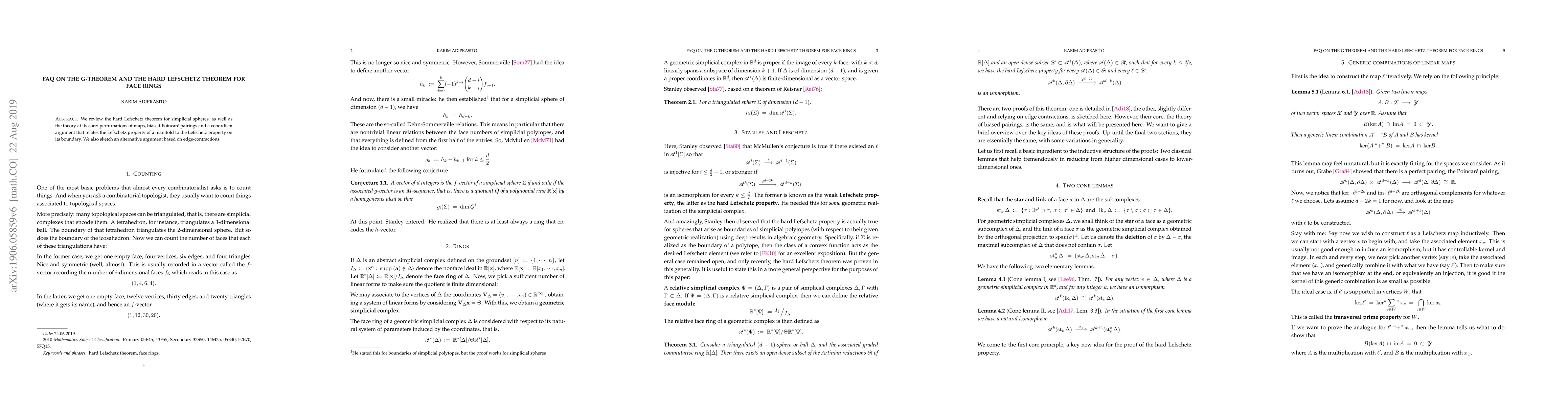 This paper reviews the proof of the $g$-theorem and the hard Lefschetz theorem for face rings, focusing on simplicial spheres and the underlying theory of perturbations of maps, biased Poincaré pairings, and a cobordism argument. An alternative argument based on edge-contractions is also outlined.