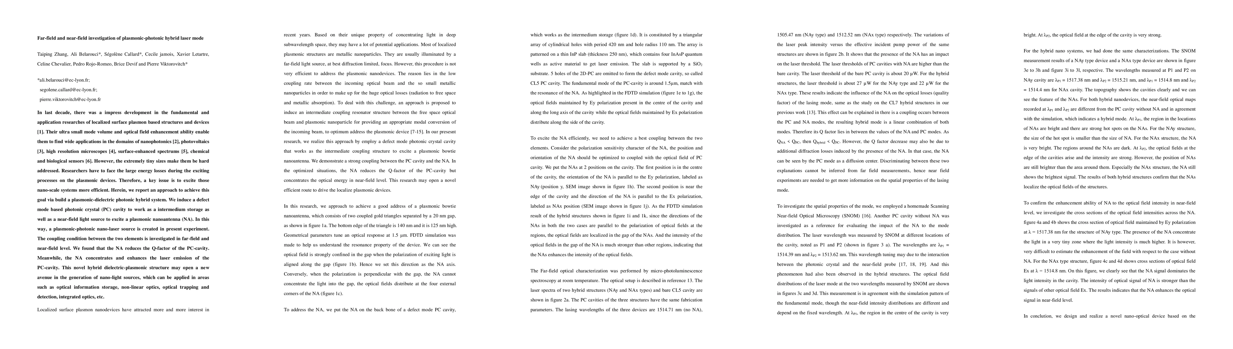 We report an approach to achieve this goal via build a plasmonic-dielectric photonic hybrid system. We induce a defect mode based photonic crystal (PC) cavity to work as a intermedium storage as well as a near-field light source to excite a plasmonic nanoantenna (NA). In this way, a plasmonic-photonic nano-laser source is created in present experiment. The coupling condition between the two elements is investigated in far-field and near-field level. We found that the NA reduces the Q-factor of the PC-cavity. Meanwhile, the NA concentrates and enhances the laser emission of the PC-cavity. This novel hybrid dielectric-plasmonic structure may open a new avenue in the generation of nano-light sources, which can be applied in areas such as optical information storage, non-linear optics, optical trapping and detection, integrated optics, etc.