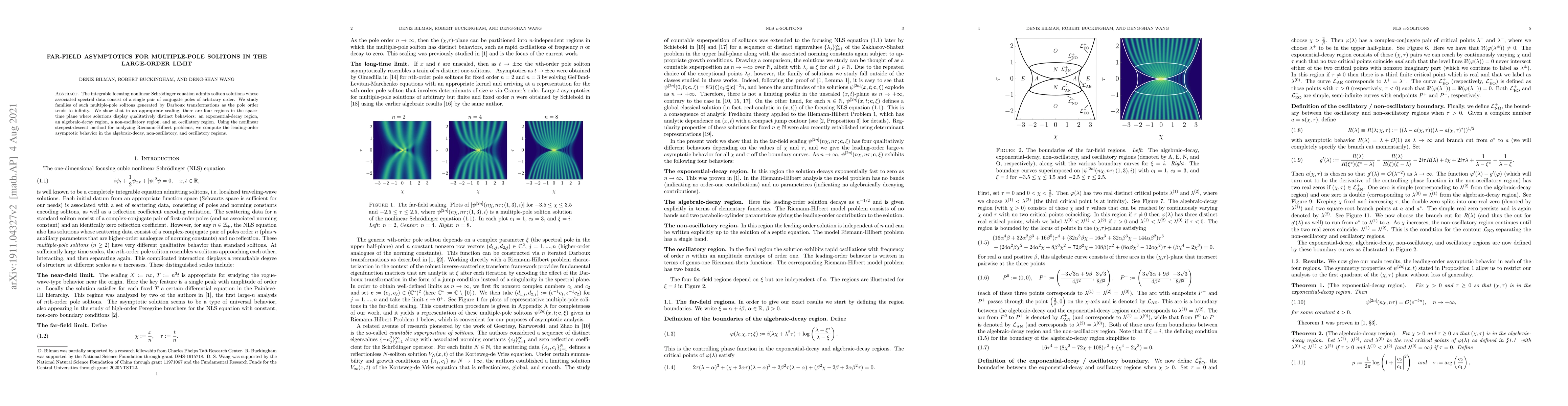 The integrable focusing nonlinear Schrodinger equation admits soliton solutions whose associated spectral data consist of a single pair of conjugate poles of arbitrary order. We study families of such multiple-pole solitons generated by Darboux transformations as the pole order tends to infinity. We show that in an appropriate scaling, there are four regions in the space-time plane where solutions display qualitatively distinct behaviors: an exponential-decay region, an algebraic-decay region, a non-oscillatory region, and an oscillatory region. Using the nonlinear steepest-descent method for analyzing Riemann-Hilbert problems, we compute the leading-order asymptotic behavior in the algebraic-decay, non-oscillatory, and oscillatory regions.