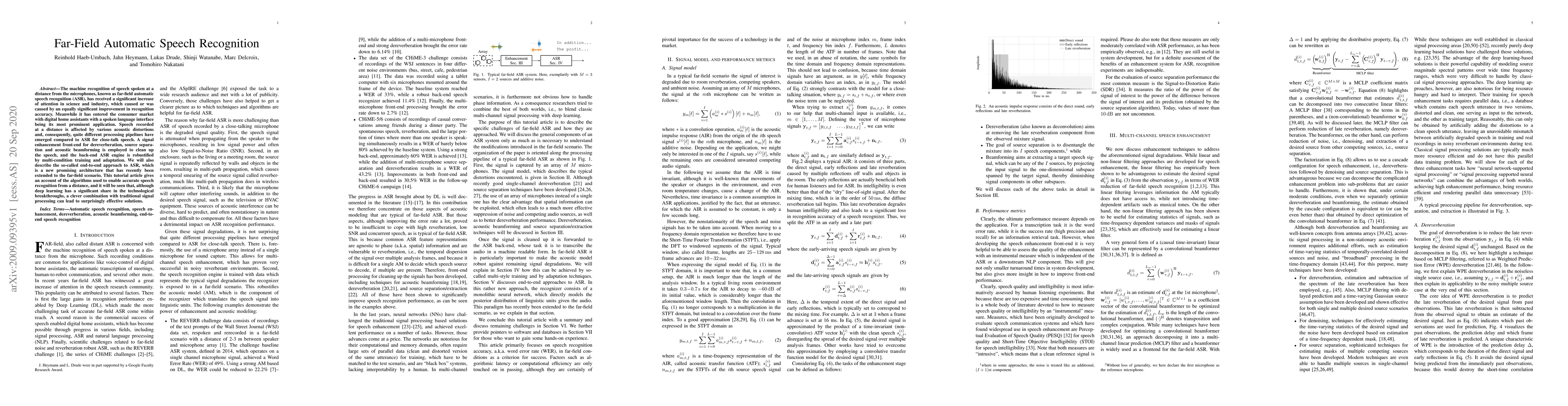 This paper reviews advancements in far-field automatic speech recognition (ASR) technology, highlighting the use of signal enhancement techniques and robust ASR engines to address acoustic distortions. It emphasizes the integration of deep learning and traditional signal processing for effective solutions in distant speech recognition.