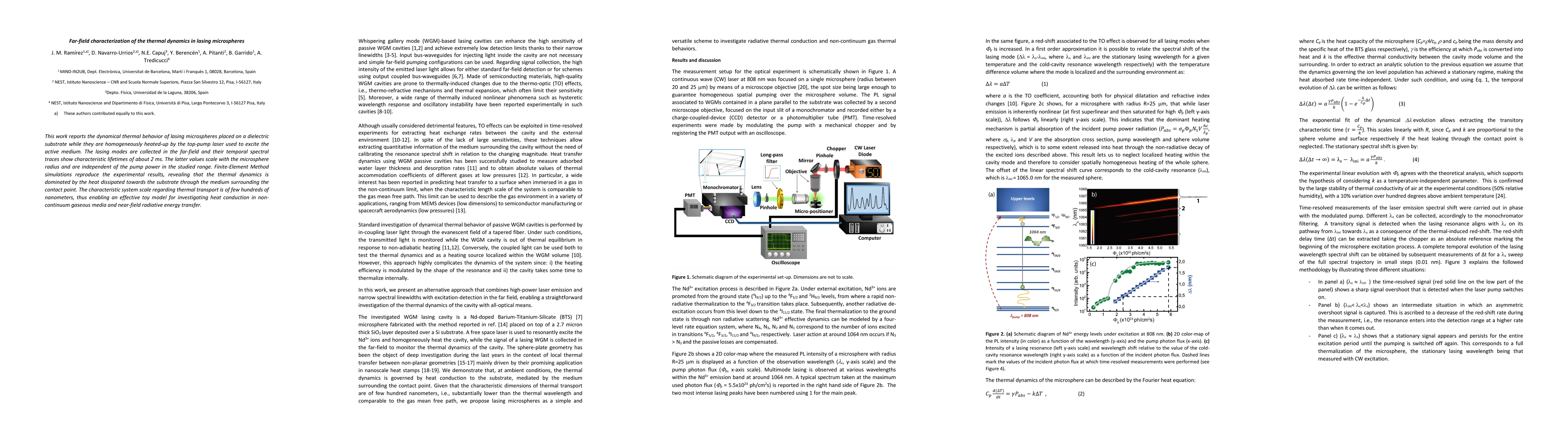 This work reports the dynamical thermal behavior of lasing microspheres placed on a dielectric substrate while they are homogeneously heated-up by the top-pump laser used to excite the active medium. The lasing modes are collected in the far-field and their temporal spectral traces show characteristic lifetimes of about 2 ms. The latter values scale with the microsphere radius and are independent of the pump power in the studied range. Finite-Element Method simulations reproduce the experimental results, revealing that the thermal dynamics is dominated by the heat dissipated towards the substrate through the medium surrounding the contact point. The characteristic system scale regarding thermal transport is of few hundreds of nanometers, thus enabling an effective toy model for investigating heat conduction in non-continuum gaseous media and near-field radiative energy transfer.