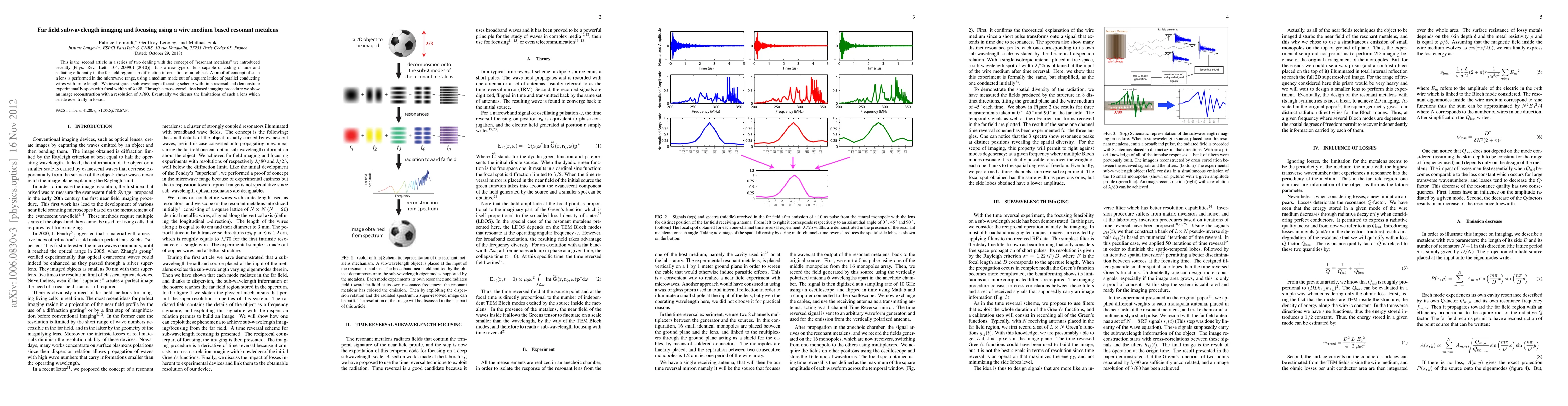 This paper demonstrates a resonant metalens made from a wire medium that enables subwavelength imaging and focusing in the far field, achieving focal widths of λ/25 and image resolution of λ/80 in the microwave range. The study highlights the potential and limitations of such lenses, primarily due to material losses.