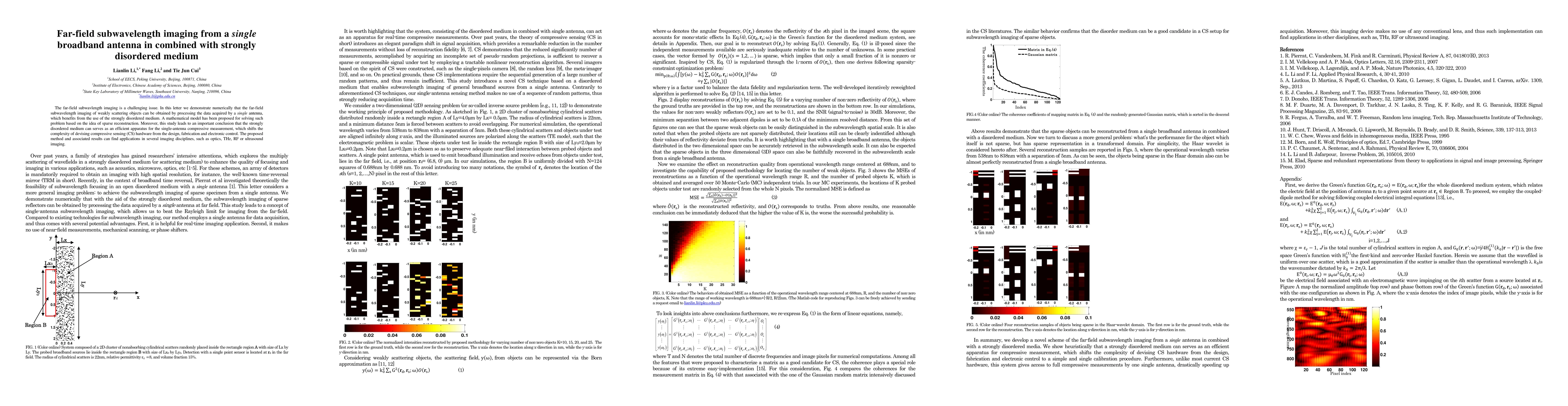 This paper demonstrates a method for far-field subwavelength imaging using a single broadband antenna and a strongly disordered medium, achieving results through sparse reconstruction. The study concludes that the disordered medium can simplify compressive sensing hardware design, with potential applications across various imaging fields.