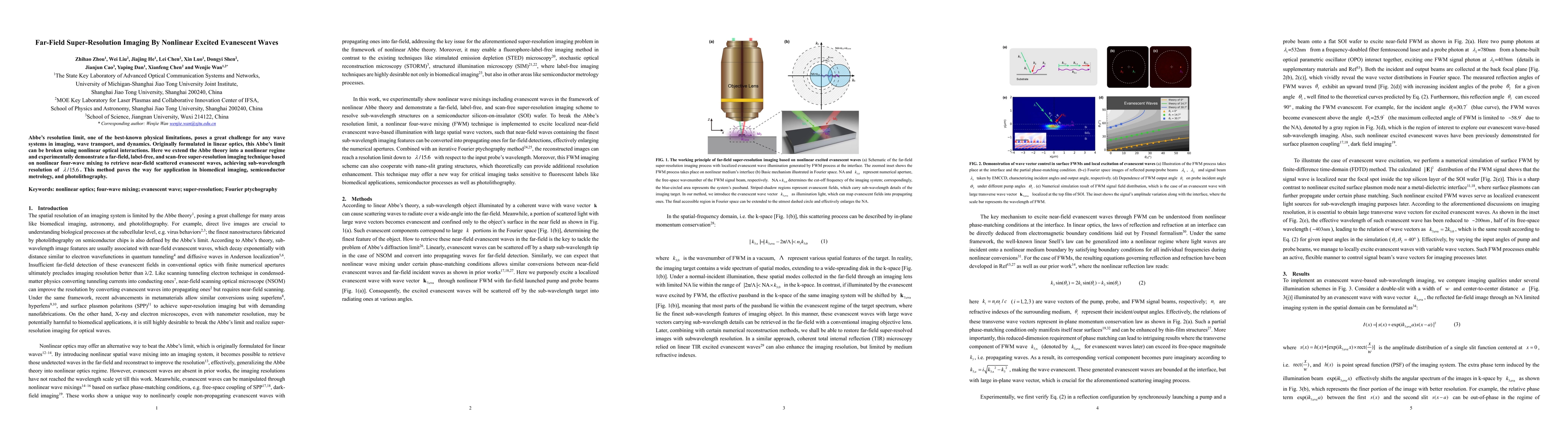 This paper presents a novel super-resolution imaging technique that breaks Abbe's resolution limit using nonlinear four-wave mixing to retrieve evanescent waves, achieving a resolution of $\lambda/15.6$ without scanning or labeling. The method holds potential for applications in biomedical imaging, semiconductor metrology, and photolithography.
