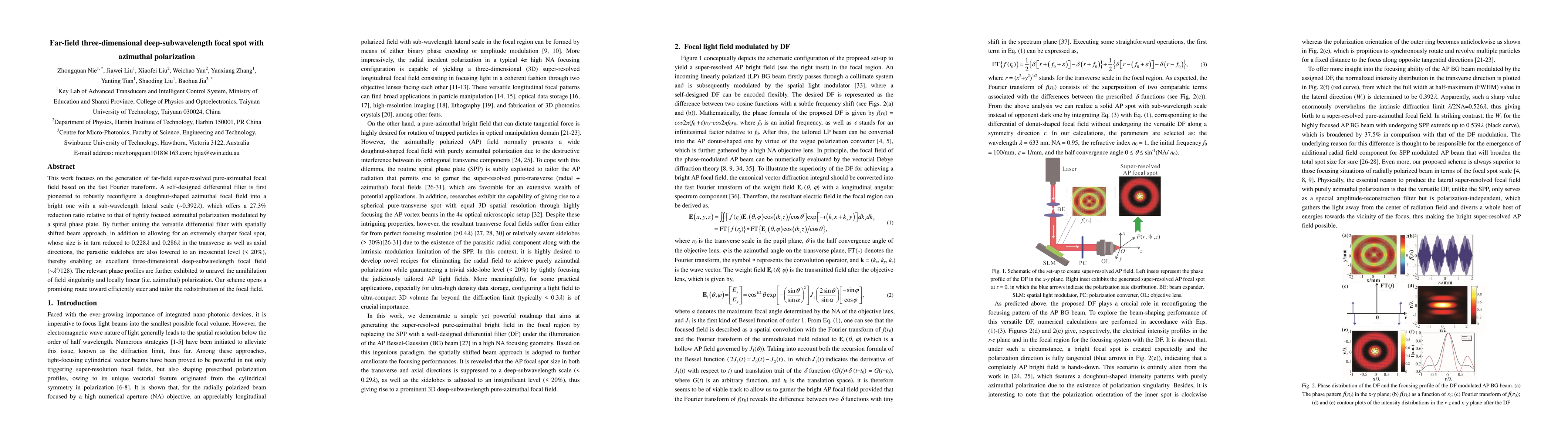 This paper presents a method to generate a far-field, super-resolved, pure-azimuthal focal field using a fast Fourier transform and a self-designed differential filter, resulting in a significantly sharper, deep-subwavelength focal spot with reduced sidelobes. The technique achieves a 27.3% reduction in size compared to traditional methods.