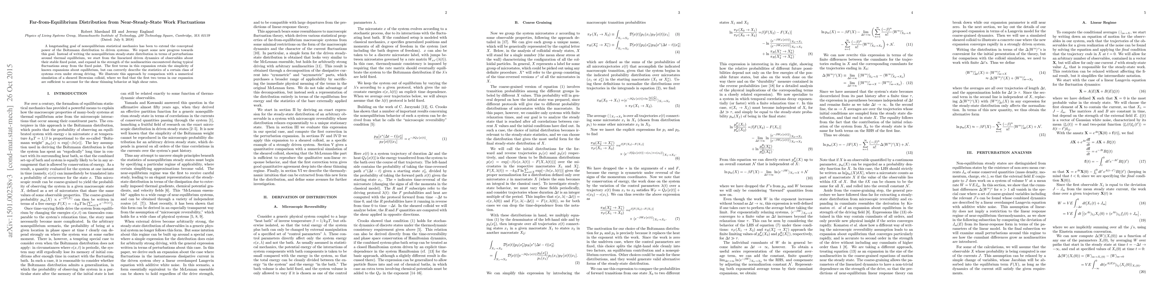 This paper advances nonequilibrium statistical mechanics by developing a new method to describe the distribution of driven systems, starting from near-steady-state fluctuations. The approach expands the dynamics of observables around their fixed points, providing a simplified yet effective description of far-from-equilibrium distributions even under strong driving, as demonstrated by a simulation of a sheared Brownian colloid.