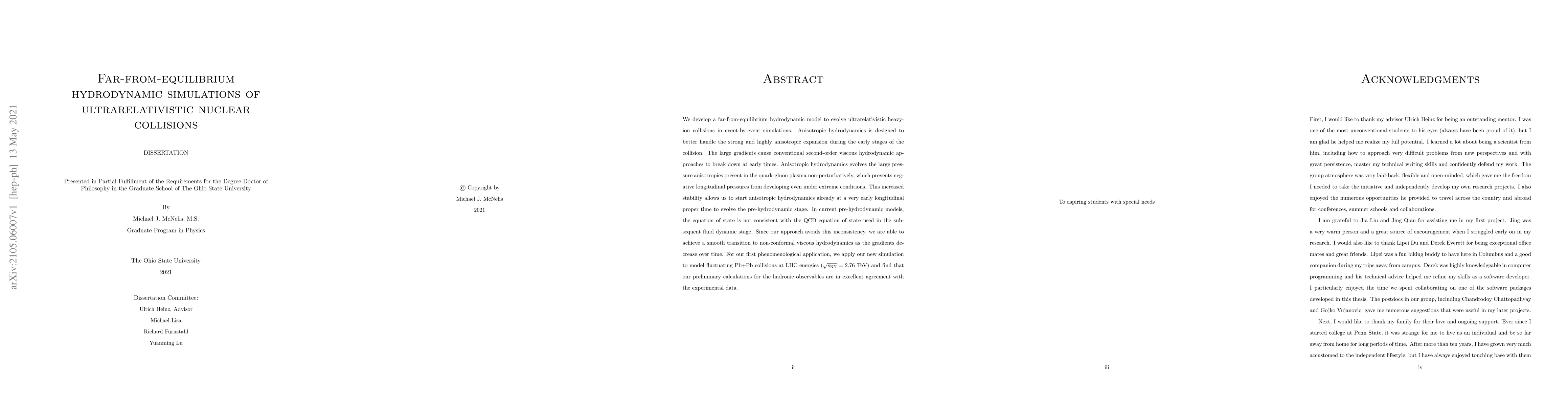 We develop a far-from-equilibrium hydrodynamic model to evolve ultrarelativistic heavy-ion collisions in event-by-event simulations. Anisotropic hydrodynamics is designed to better handle the strong and highly anisotropic expansion during the early stages of the collision. The large gradients cause conventional second-order viscous hydrodynamic approaches to break down at early times. Anisotropic hydrodynamics evolves the large pressure anisotropies present in the quark-gluon plasma non-perturbatively, which prevents negative longitudinal pressures from developing even under extreme conditions. This increased stability allows us to start anisotropic hydrodynamics already at a very early longitudinal proper time to evolve the pre-hydrodynamic stage. In current pre-hydrodynamic models, the equation of state is not consistent with the QCD equation of state used in the subsequent fluid dynamic stage. Since our approach avoids this inconsistency, we are able to achieve a smooth transition to non-conformal viscous hydrodynamics as the gradients decrease over time. For our first phenomenological application, we apply our new simulation to model fluctuating Pb+Pb collisions at LHC energies ($\sqrt{s_\text{NN}} = 2.76$ TeV) and find that our preliminary calculations for the hadronic observables are in excellent agreement with the experimental data.