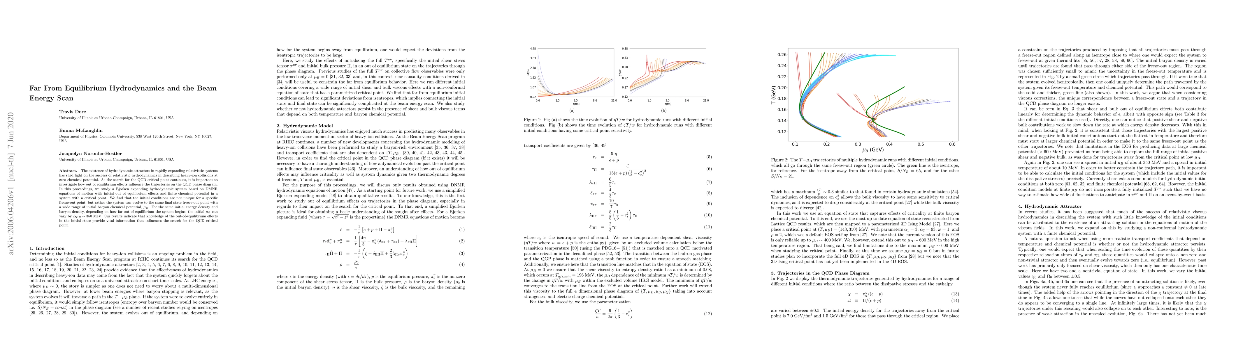 The existence of hydrodynamic attractors in rapidly expanding relativistic systems has shed light on the success of relativistic hydrodynamics in describing heavy-ion collisions at zero chemical potential. As the search for the QCD critical point continues, it is important to investigate how out of equilibrium effects influence the trajectories on the QCD phase diagram. In this proceedings, we study a Bjorken expanding hydrodynamic system based on DMNR equations of motion with initial out of equilibrium effects and finite chemical potential in a system with a critical point. We find that the initial conditions are not unique for a specific freeze-out point, but rather the system can evolve to the same final state freeze-out point with a wide range of initial baryon chemical potential, $\mu_B$. For the same initial energy density and baryon density, depending on how far out of equilibrium the system begins, the initial $\mu_B$ can vary by $\Delta \mu_B\sim 350$ MeV. Our results indicate that knowledge of the out-of-equilibrium effects in the initial state provide vital information that influences the search for the QCD critical point.