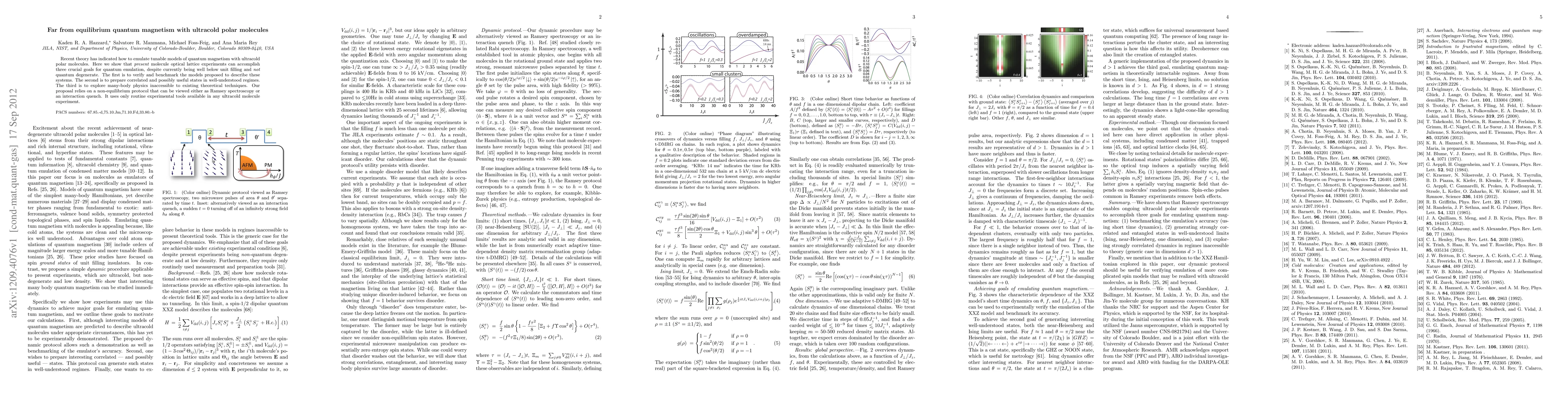 This paper demonstrates how current ultracold polar molecule experiments can achieve three key goals in quantum magnetism emulation: verifying proposed models, preparing correlated states, and exploring many-body physics beyond existing theoretical techniques, using a non-equilibrium protocol based on Ramsey spectroscopy or an interaction quench.