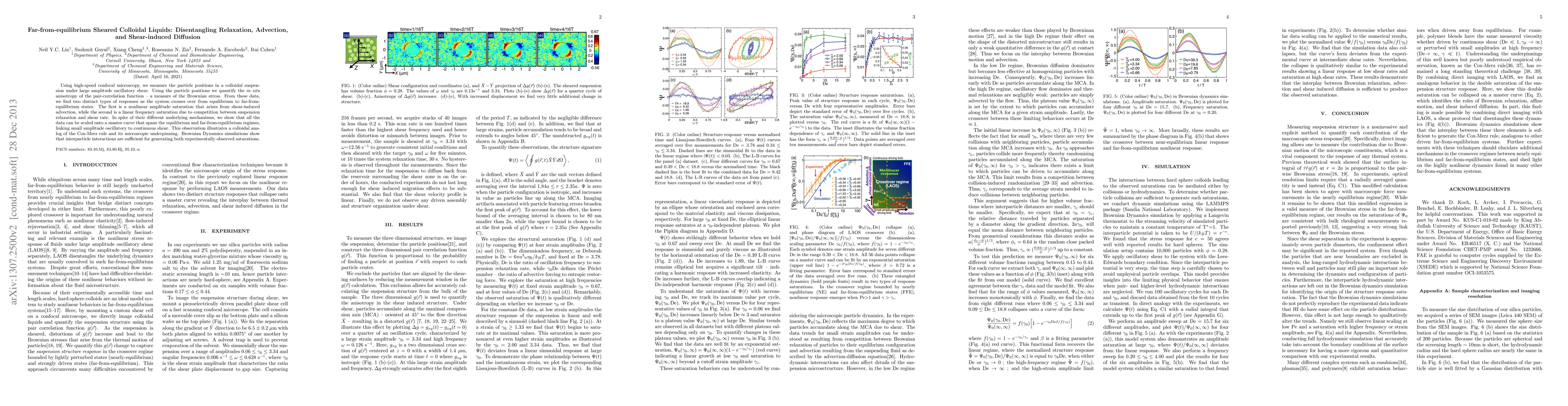 Using high-speed confocal microscopy, we measure the particle positions in a colloidal suspension under large amplitude oscillatory shear. Using the particle positions we quantify the in situ anisotropy of the pair-correlation function -- a measure of the Brownian stress. From these data, we find two distinct types of responses as the system crosses over from equilibrium to far-from-equilibrium states. The first is a nonlinear amplitude saturation that arises from shear-induced advection, while the second is a linear frequency saturation due to competition between suspension relaxation and shear rate. In spite of their different underlying mechanisms, we show that all the data can be scaled onto a master curve that spans the equilibrium and far-from-equilibrium regimes, linking small amplitude oscillatory to continuous shear. This observation illustrates a colloidal analog of the Cox-Merz rule and its microscopic underpinning. Brownian Dynamics simulations show that interparticle interactions are sufficient for generating both experimentally observed saturations.