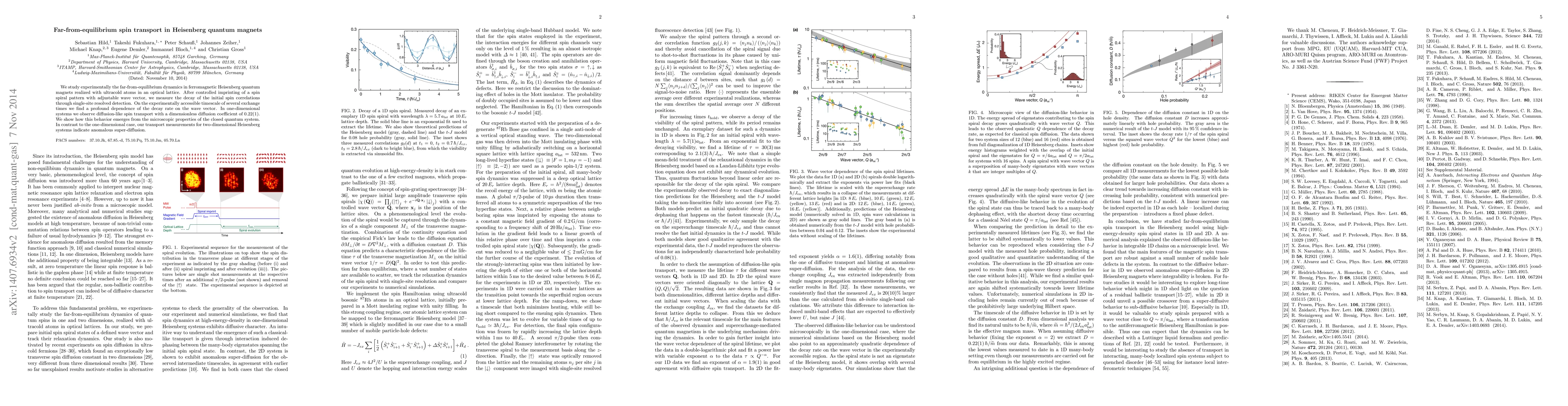 This research investigates the far-from-equilibrium spin transport dynamics in ferromagnetic Heisenberg quantum magnets using ultracold atoms in optical lattices. The study finds diffusion-like transport in one-dimensional systems and anomalous super-diffusion in two-dimensional systems, revealing significant wave vector dependence and the underlying microscopic mechanisms.