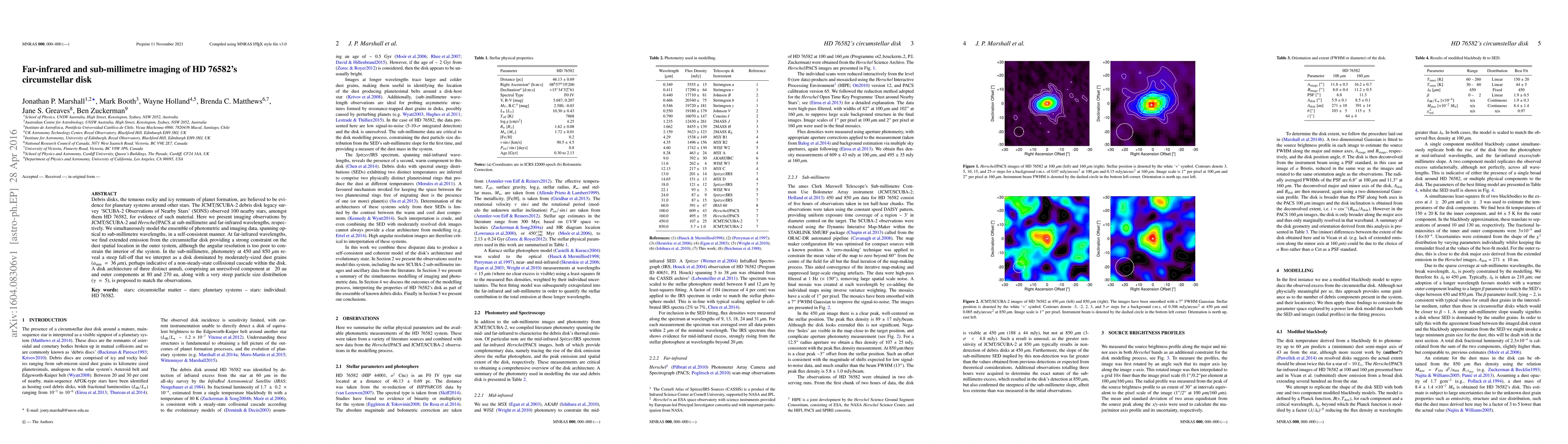 This study uses JCMT/SCUBA-2 and Herschel/PACS to image the circumstellar disk around HD~76582, revealing extended far-infrared emission and a steep sub-millimetre fall-off indicative of moderately-sized dust grains. The proposed disk architecture includes three annuli, suggesting a non-steady-state collisional cascade.