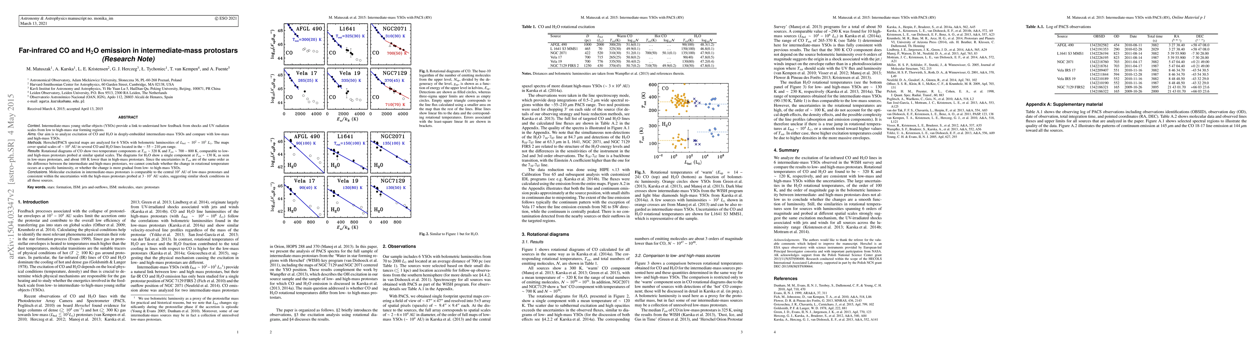 This study analyzes CO and H$_2$O emission in intermediate-mass protostars, finding molecular excitation comparable to low- and high-mass protostars at similar spatial scales.