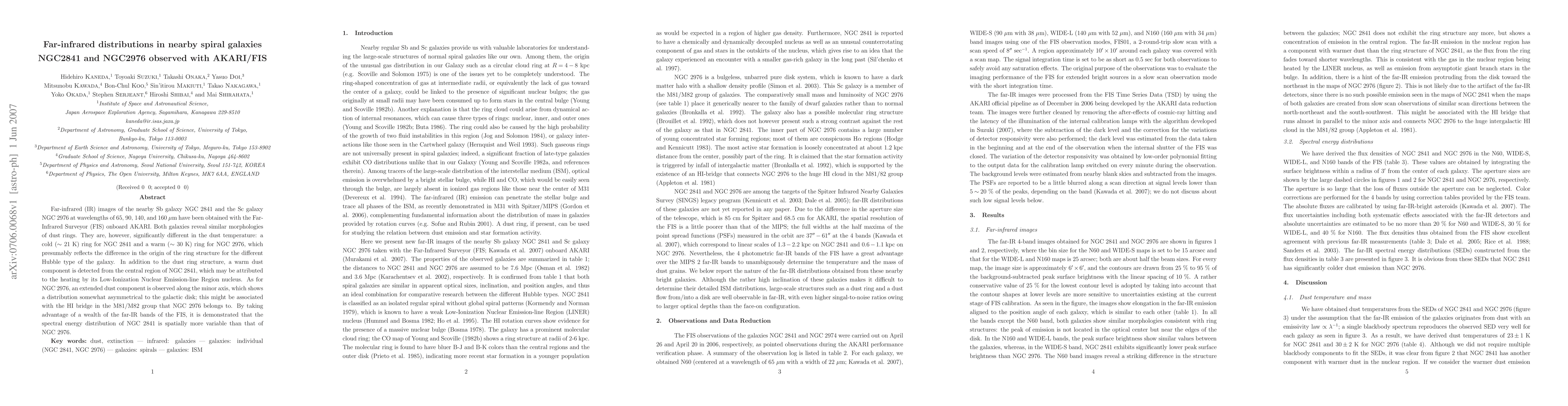 Astronomers used AKARI/FIS to observe far-infrared radiation from two spiral galaxies, NGC2841 and NGC2976, revealing distinct dust ring structures and temperatures, with implications for understanding galaxy evolution and formation.