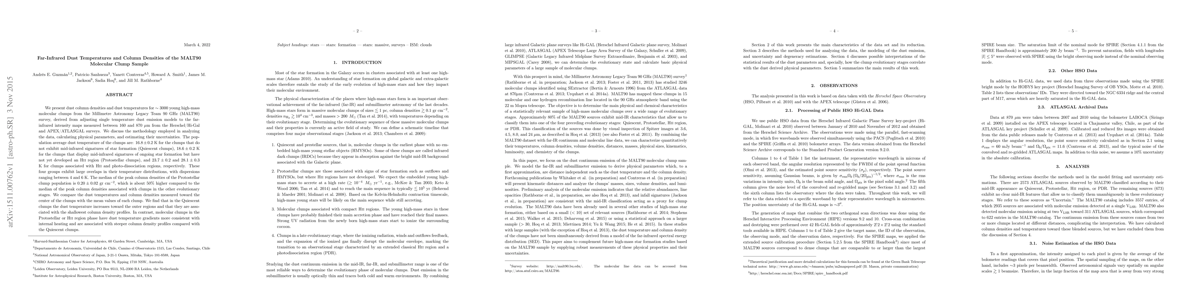 We present dust column densities and dust temperatures for $\sim3000$ young high-mass molecular clumps from the Millimetre Astronomy Legacy Team 90 GHz (MALT90) survey, derived from adjusting single temperature dust emission models to the far-infrared intensity maps measured between 160 and 870 \micron\ from the Herschel/Hi-Gal and APEX/ATLASGAL surveys. We discuss the methodology employed in analyzing the data, calculating physical parameters, and estimating their uncertainties. The population average dust temperature of the clumps are: $16.8\pm0.2$ K for the clumps that do not exhibit mid-infrared signatures of star formation (Quiescent clumps), $18.6\pm0.2$ K for the clumps that display mid-infrared signatures of ongoing star formation but have not yet developed an HII region (Protostellar clumps), and $23.7\pm0.2$ and $28.1\pm0.3$ K for clumps associated with HII and photo-dissociation regions, respectively. These four groups exhibit large overlaps in their temperature distributions, with dispersions ranging between 4 and 6 K. The median of the peak column densities of the Protostellar clump population is $0.20\pm0.02$ gr cm$^{-2}$, which is about 50% higher compared to the median of the peak column densities associated with clumps in the other evolutionary stages. We compare the dust temperatures and column densities measured toward the center of the clumps with the mean values of each clump. We find that in the Quiescent clumps the dust temperature increases toward the outer regions and that they are associated with the shallowest column density profiles. In contrast, molecular clumps in the Protostellar or HII region phase have dust temperature gradients more consistent with internal heating and are associated with steeper column density profiles compared with the Quiescent clumps.