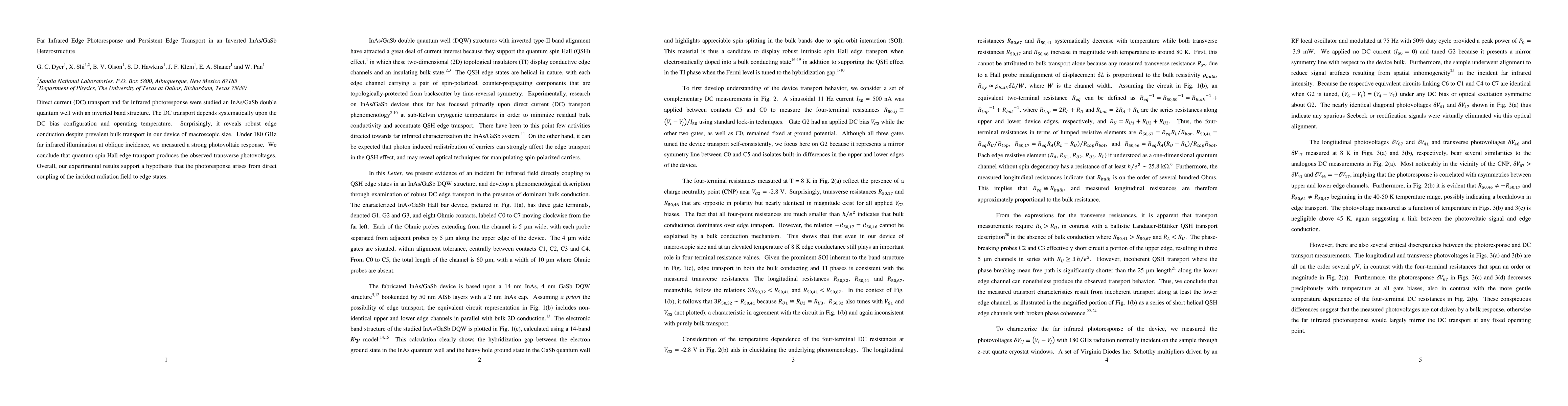 This study investigates the DC transport and far infrared photoresponse in an inverted InAs/GaSb heterostructure, revealing robust edge conduction despite bulk transport. Under 180 GHz illumination, a strong photovoltaic response was observed, suggesting quantum spin Hall edge transport generates the transverse photovoltages.