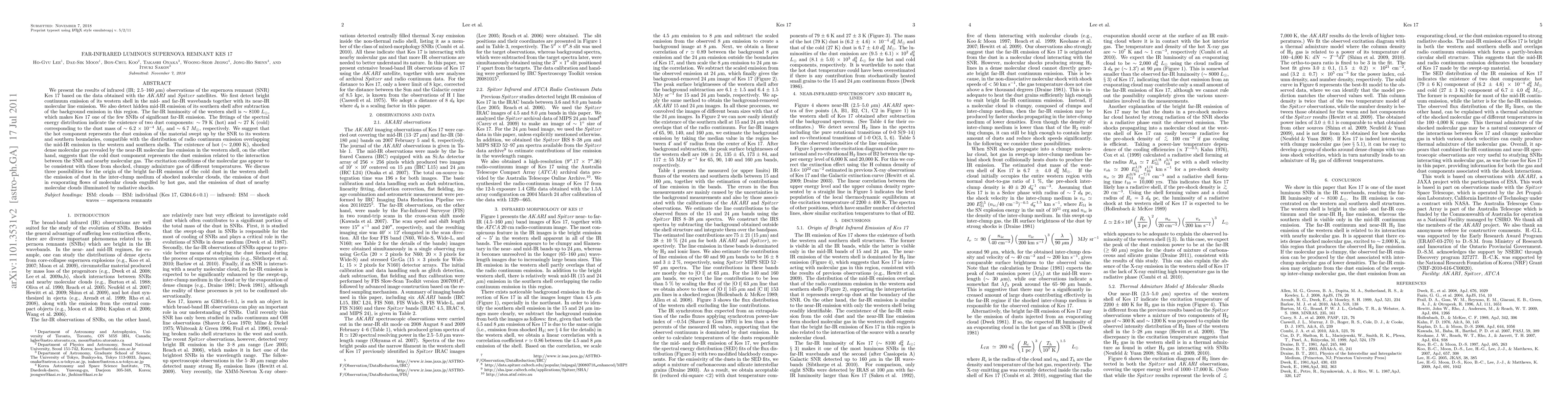 The study utilized infrared (IR; 2.5--160 µm) observations from AKARI and Spitzer satellites to analyze the supernova remnant (SNR) Kes 17.