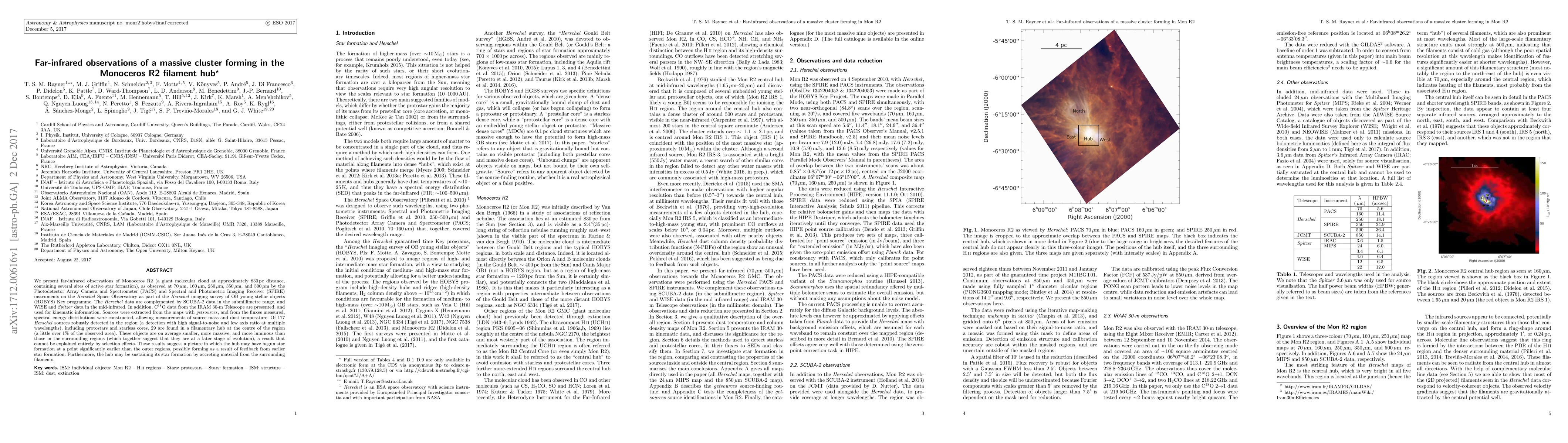This study uses Herschel Space Observatory data to observe the Monoceros R2 filament hub, revealing 29 dense, massive, and luminous sources within a central filamentary region. These findings suggest that star formation in the hub began earlier and may be sustained by material accretion from surrounding filaments.