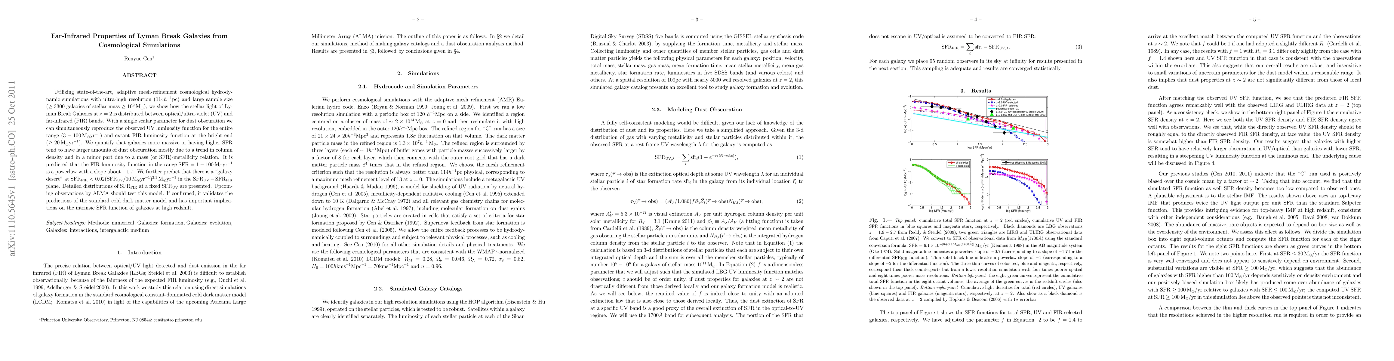 This paper uses high-resolution cosmological simulations to analyze the distribution of stellar light in Lyman Break Galaxies at z=2 between optical/UV and far-infrared bands, showing that more massive galaxies with higher star formation rates (SFR) exhibit greater dust obscuration. Predictions include a powerlaw FIR luminosity function and a "galaxy desert" in the SFR(UV)-SFR(FIR) plane, which upcoming ALMA observations can test.