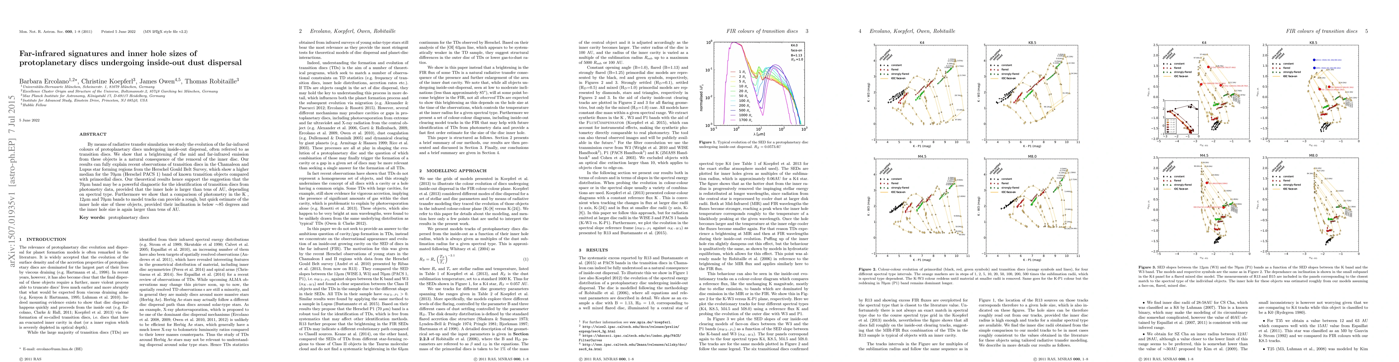 By means of radiative transfer simulation we study the evolution of the far-infrared colours of protoplanetary discs undergoing inside-out dispersal, often referred to as transition discs. We show that a brightening of the mid and far-infrared emission from these objects is a natural consequence of the removal of the inner disc. Our results can fully explain recent observations of transition discs in the Chamaleon and Lupus star forming regions from the Herschel Gould Belt Survey, which show a higher median for the 70?um (Herschel PACS 1) band of known transition objects compared with primordial discs. Our theoretical results hence support the suggestion that the 70?um band may be a powerful diagnostic for the identification of transition discs from photometry data, provided that the inner hole is larger than tens of AU, depending on spectral type. Furthermore we show that a comparison of photometry in the K , 12?um and 7u0?m bands to model tracks can provide a rough, but quick estimate of the inner hole size of these objects, provided their inclination is below ?85 degrees and the inner hole size is again larger than tens of AU.
